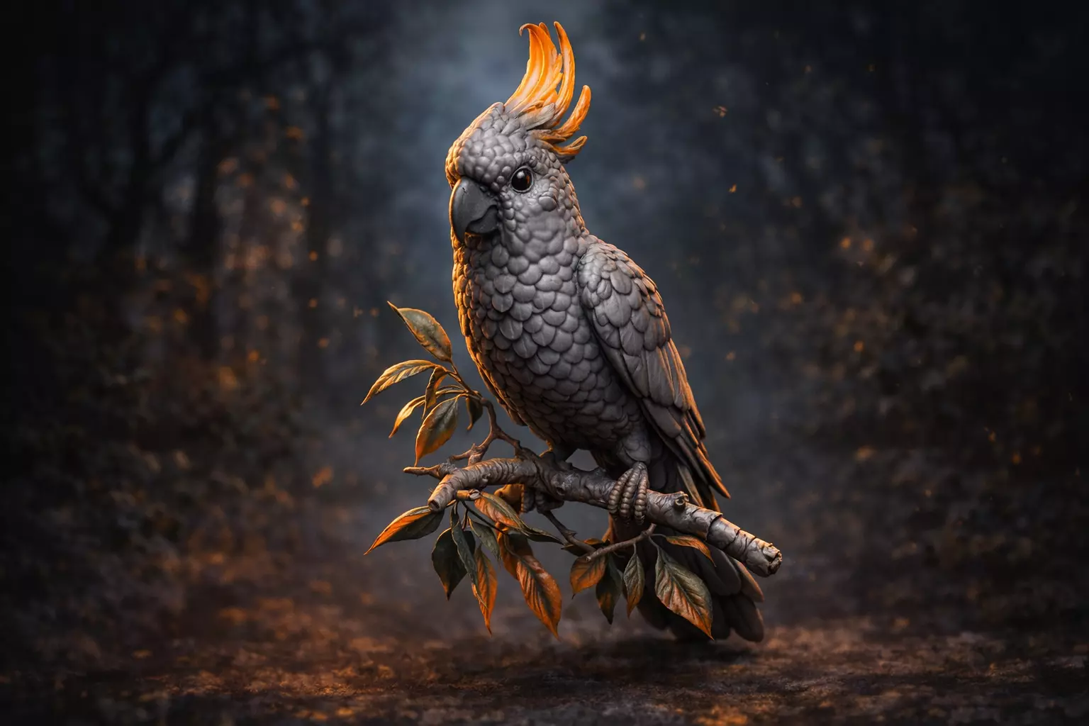 You are purchasing a high-quality STL model of a cockatoo parrot perched on a leafy branch, featuring a raised crest and detailed feather structure.This miniature is designed as an elegant exotic bird sculpture, perfect for display pieces, nature-themed dioramas, and collectible figures.