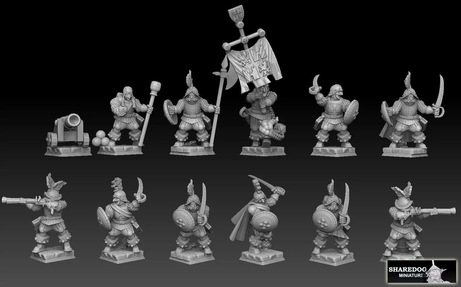 A company of stubborn and ruthless exporers. Intended for 3d print.