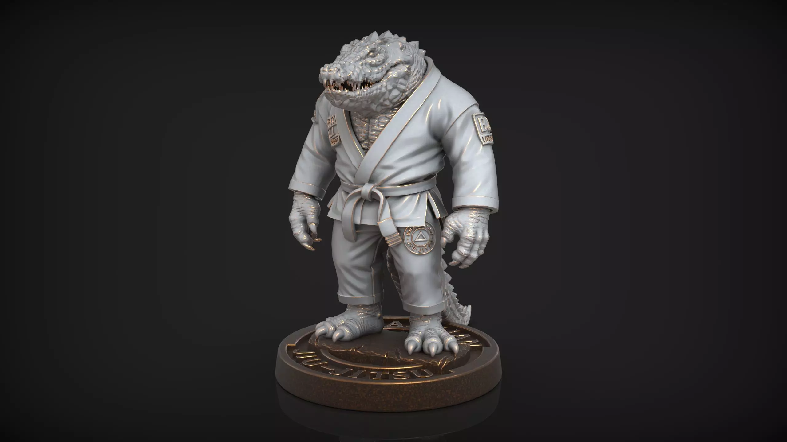 Anthropomorphic Crocodile BJJ Fighter 3D Model - Brazilian Jiu-Jitsu Miniature Figurine for 3D Printing