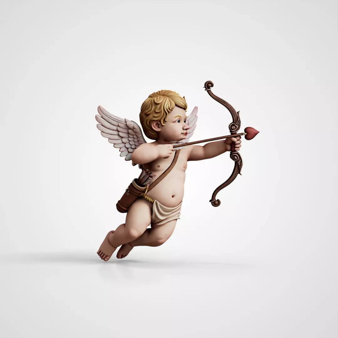 3D Cupid Angel Figure with Bow and Heart ArrowA high-quality 3D model of a Cupid angel in a dynamic flying pose. This model features a classic cherub design with detailed wings and an ornate bow, perfect for holiday-themed projects, 3D printing, or interior decor visualization.Main Features:Classic Design: Beautifully sculpted Cupid with a heart-tipped arrow.Versatile Use: Ideal for Valentine’s Day renders, wedding decor, or as a collectible figurine.Ready for Projects: Clean geometry and professional look.Technical Information:Formats: OBJ, STL, FBX, GLB, 3DM, ZBRUSHUsage: Suitable for 3D printing, architectural visualization, and digital art.
