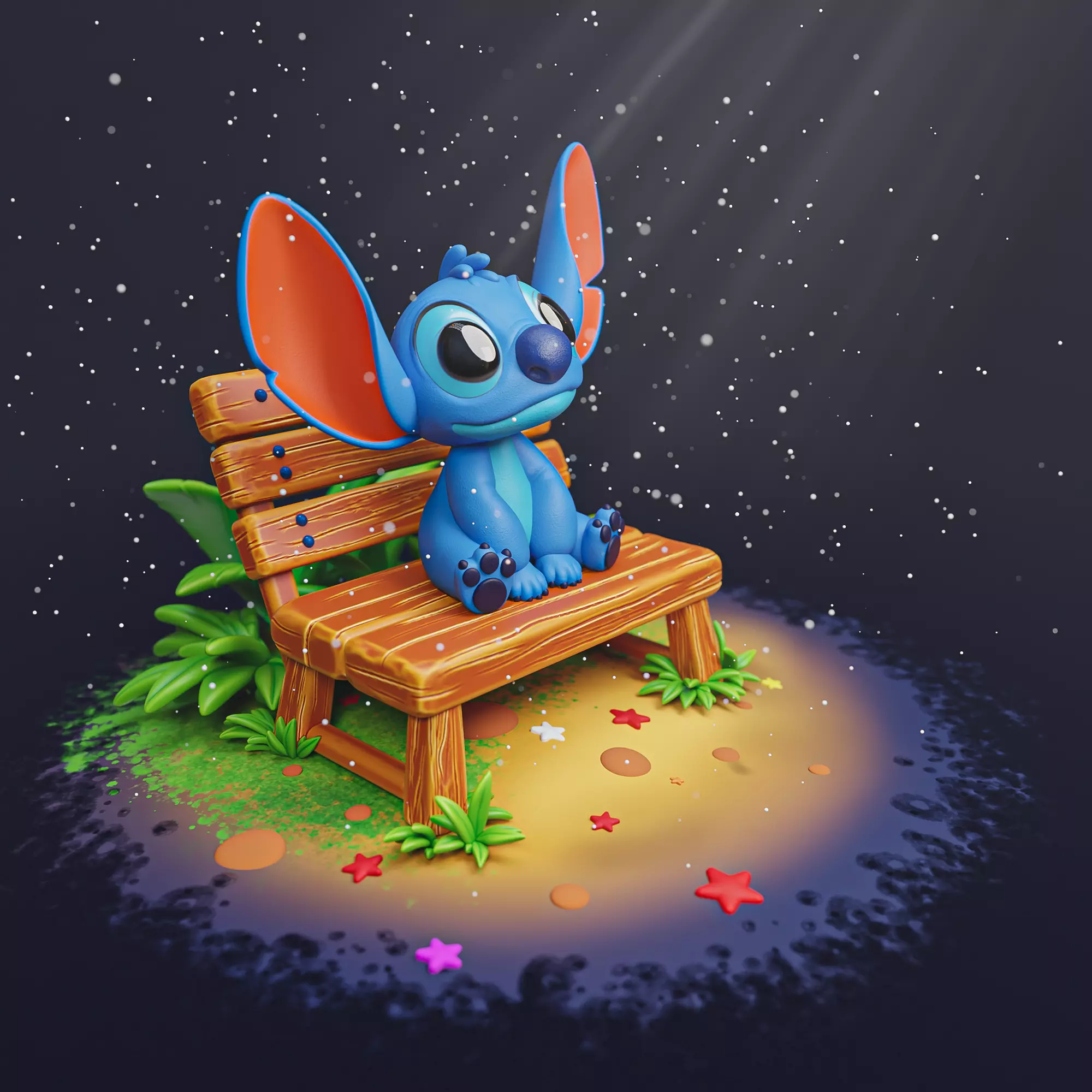 This high-quality 3D model features an adorable alien creature sitting peacefully on a wooden bench, surrounded by small plants and ground details on a circular base. Designed in a charming chibi style, it’s perfect for collectors, fans of cute characters, or as a decorative 3D print for your shelf.