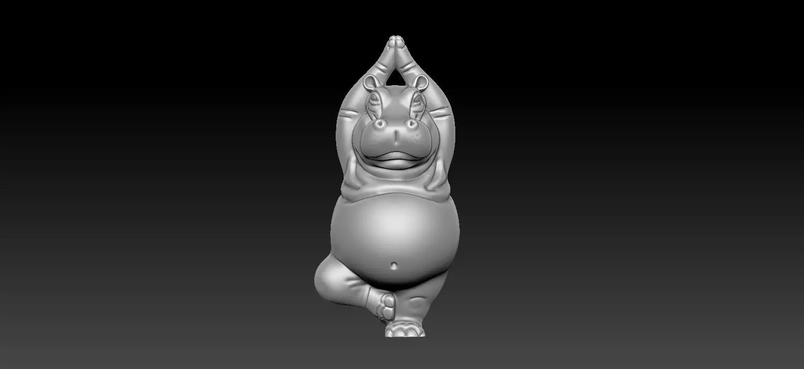 This is a cute baby hippo chibi style 3D model in a yoga pose sculpted in ZBrush.The character features a round body soft forms and a playful expression making it perfect for cute figurines collectibles and 3D printing projects.