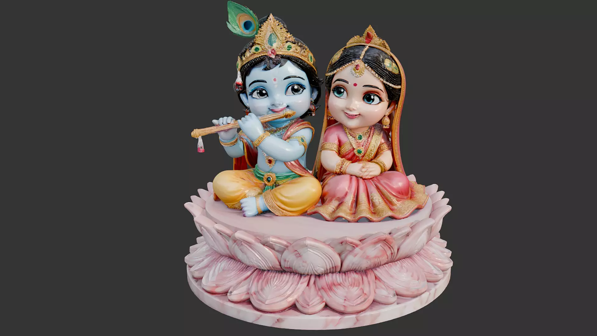 • Cute Baby Radha Krishna chibi-style figurine• Detailed lotus pedestal base• Clean geometry suitable for 3D printing• Can be scaled to different sizes