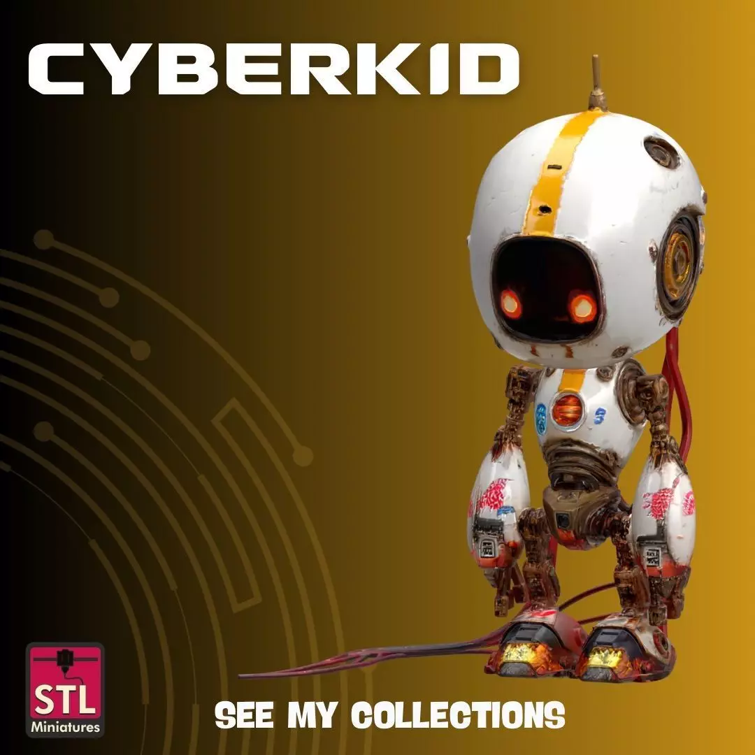 CyberKid-09 is a stylized futuristic robot character, blending Japanese anime aesthetics with gritty sci-fi detail. With glowing eyes, exposed wires, and weathered textures, this miniature mecha brings personality and presence to any 3D print collection. Ideal for tabletop settings, dioramas, or as a standalone art piece, CyberKid-09 stands out for its craftsmanship and charm.