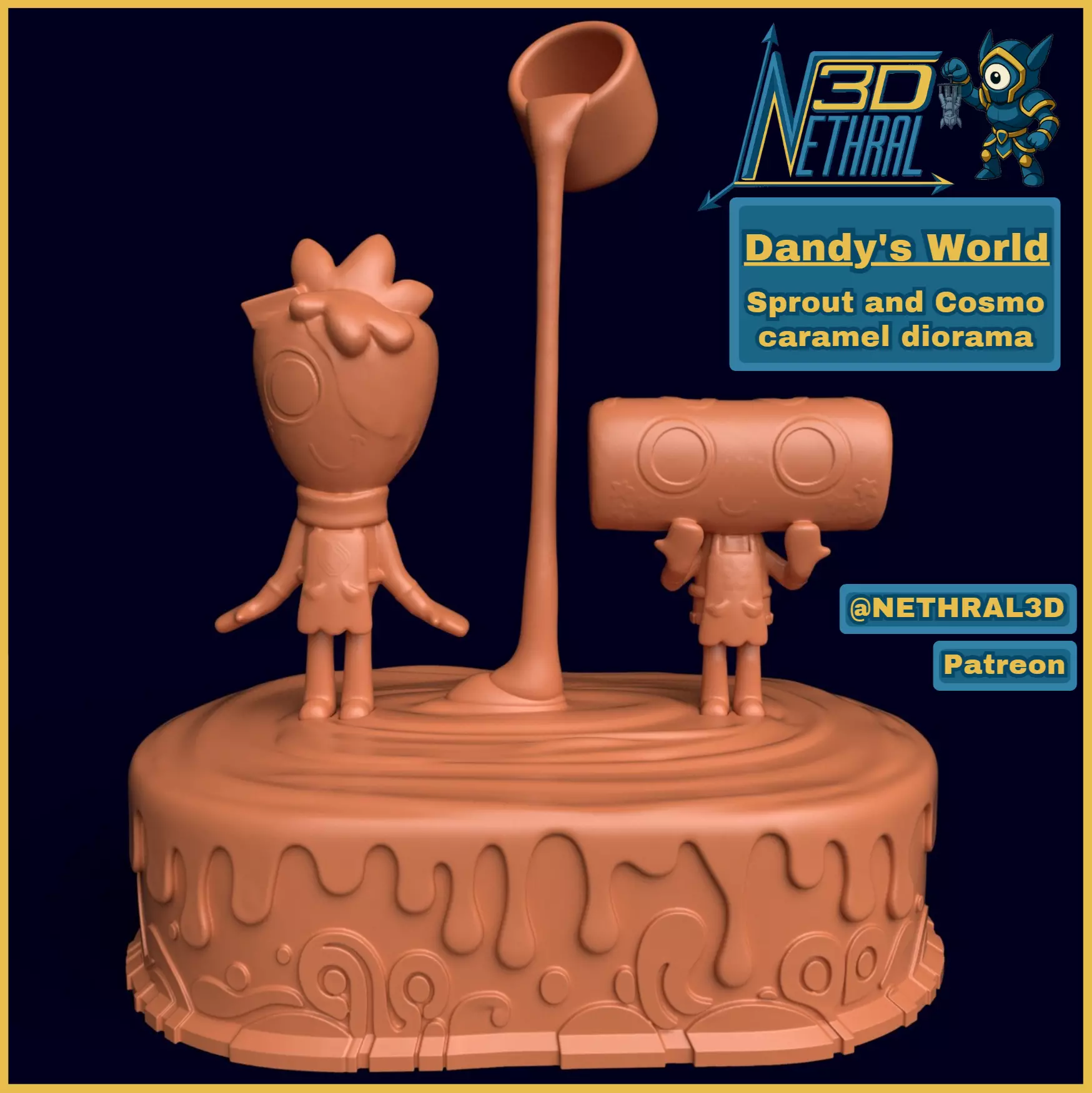 Bring warmth and humor to your shelf with this charming diorama from Dandy’s World — featuring Sprout and Cosmo in the middle of a caramel-making adventure.