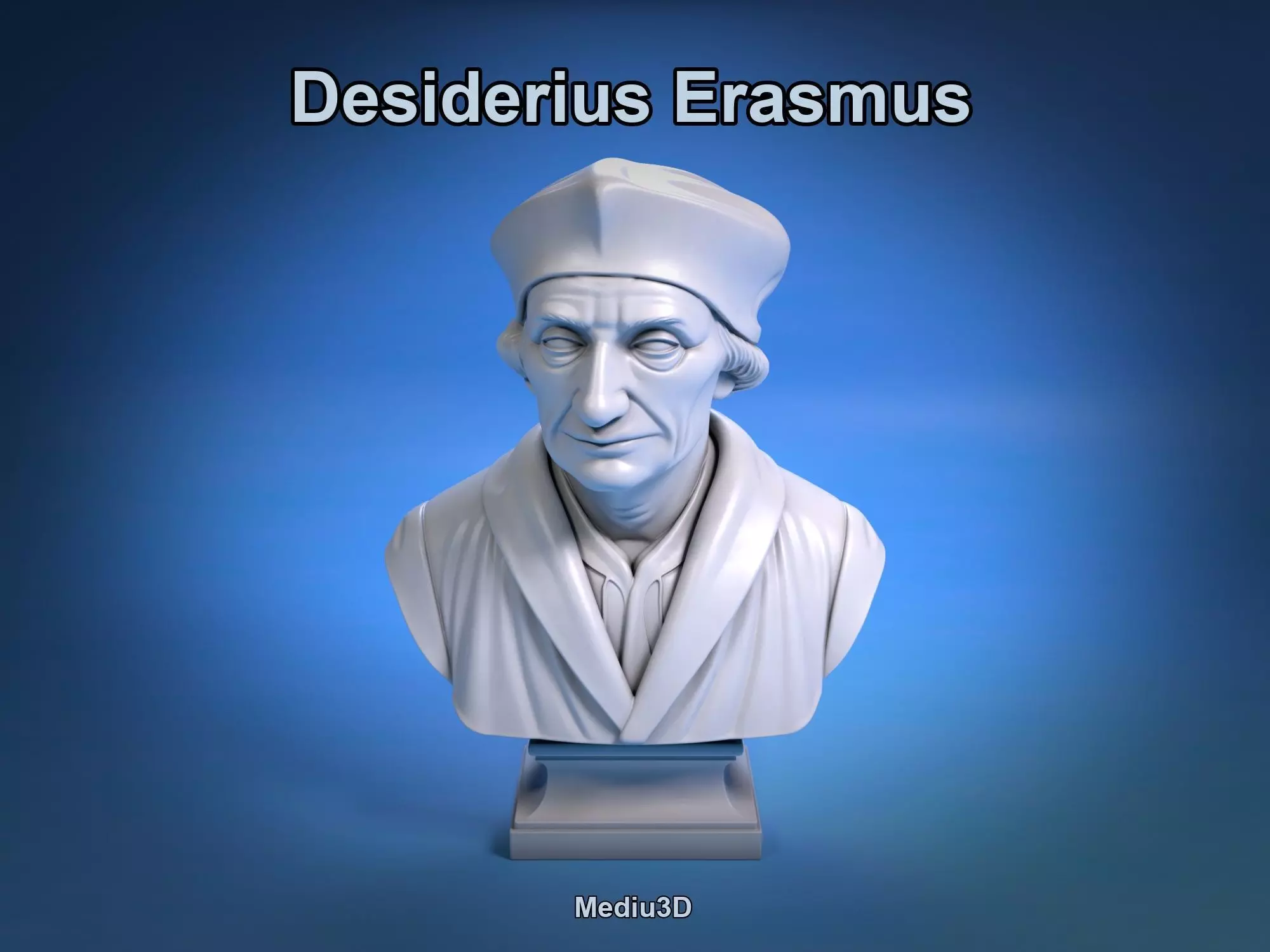 This elegant bust portrays Desiderius Erasmus, the renowned Dutch Renaissance humanist, philosopher, and theologian. Crafted in a beige monochromatic marble texture, the model features Erasmus with a contemplative expression, adorned in his iconic academic robes and traditional cap. The sculpture captures the intellectual spirit of Erasmus, reflecting his significant influence on European thought and literature.