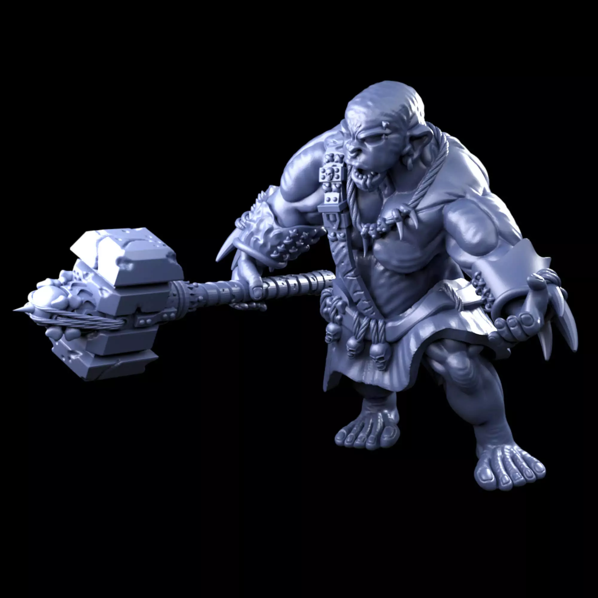Set of fantsay ogre warriors, figthers and brute miniatures wielding a large hammers, for use in tabletop games such as Dungeons and Dragons. Also comes with Lychee project files for resin pre-supported prints.