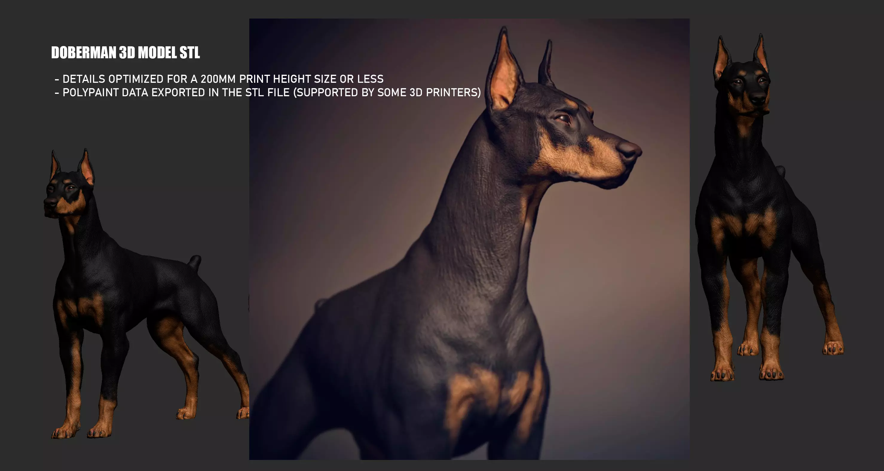 Incredible 3d model of the doberman breed. This model has been sculpted with optimized details for prints 20cm (200mm) high or less. You can obviously choose to make larger prints, but the details may not be enough in this case. Perfect model for lovers of this breed, to have as a miniature or to give as a gift to a loved one.As usual, the sale of the file is not allowed under any circumstances, as well as changes to it are not allowed. However, the sale of physical prints made with this file is allowed.I hope you like it and understand that it was made with great care and love, being charged a fair and affordable price for everyone.
