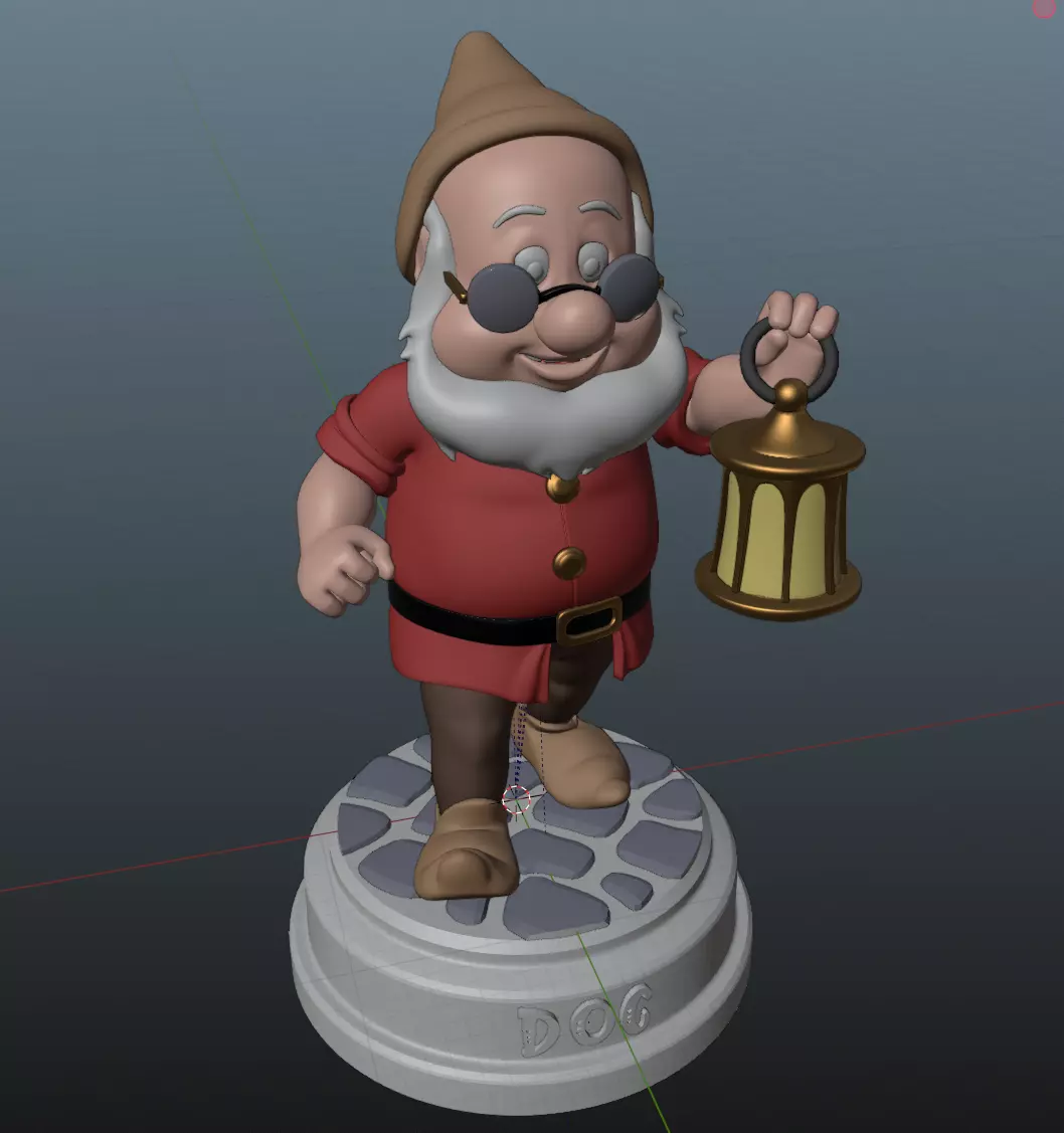 Doc is a freestanding figurine, based on the character depicted in the classic animated film about a lost princess and seven short men. who take her in and protect her from somewhat unsavory relatives and their knife wielding friends. Doc is a detail recreation, depicted on a portion of cobbled road, affixed to a simple base. Doc is available with and without base or cut to allow for easy printing of the base and the character separately. The default scale stand between 45and 55mm, but can be scaled as needed. Doc has been provided with a lantern. Doc is available with a peg fitted to a base or without the peg, allowing it to be placed on custom bases or in a custom setup for printing.