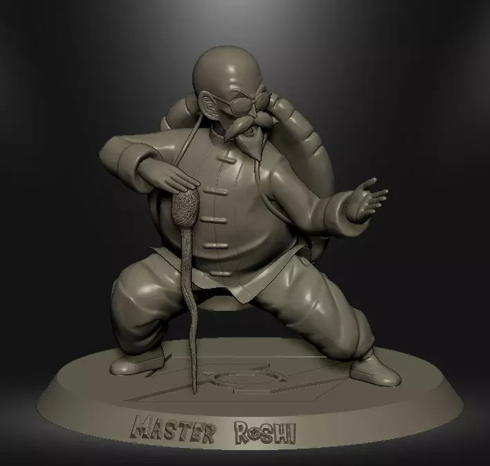 Master Roshi is bald, with a thick white fu manchu mustache and beard. He is almost always seen wearing his trademark sunglasses; some time later Master Roshi left his old sunglasses and began to wear more futuristic ones. He wears beach clothes or a martial arts suit and a Turtle Shell on his back. He usually wields a walking stick. His bust, waist and hip measurement are all 73cm. In Dragon Ball Z: Battle of Gods, Master Roshi wears a pink shirt and white shorts with flip flops. In Dragon Ball Z: Resurrection ‘F’, Master Roshi wears a white tank top and green flip flops.