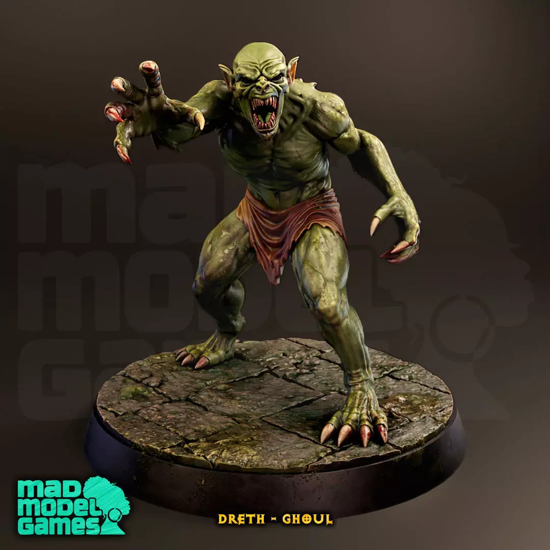 This includes the Dreth - Ghoul miniature, in 28mm and 32mm scale. Perfect for a dnd monster quest or adding to a fantasy army.