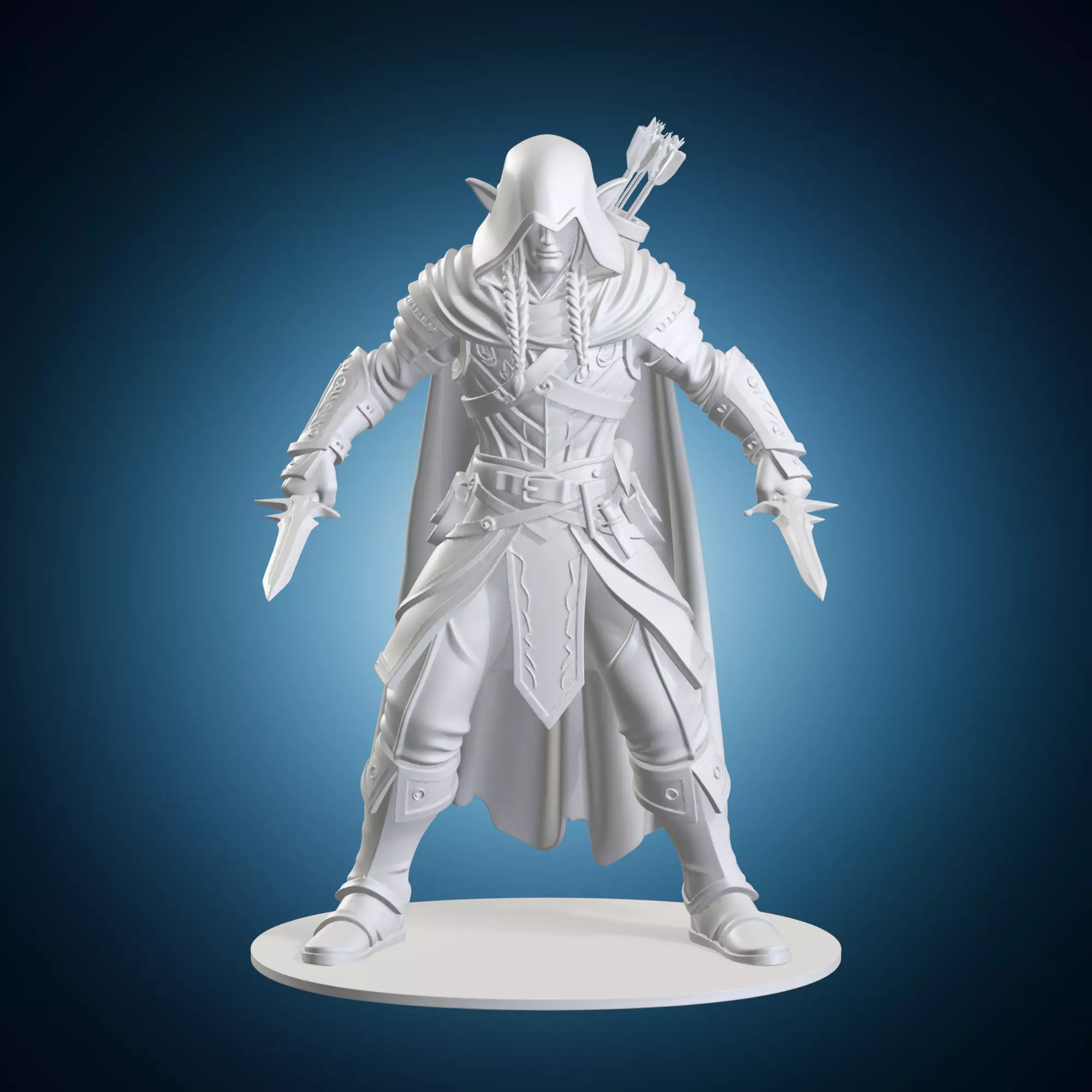 This high quality three dimensional digital model depicts a lethal Elven Assassin specifically designed for fantasy tabletop roleplaying games and miniature collectors. The figure stands in a striking pose while gripping a sharp dagger in a reverse hold to suggest a sudden and silent attack from the shadows. Every aspect of this sculpt is crafted with precision to ensure a professional look on your gaming table. The elf is adorned in detailed light armor and a flowing hooded cloak that adds a sense of mystery and movement to the character. This miniature comes with its own integrated decorative base featuring realistic textures like cracked stone and forest debris for added immersion during your sessions. It is an ideal choice for players looking to represent a rogue or a scout in campaigns like Dungeons and Dragons or Pathfinder. The digital file is highly optimized for resin printing technology which allows for the capture of extremely fine details such as individual buckles and fabric folds. The facial features are sculpted with a cold and focused expression reflecting the nature of a professional killer. This model provides an excellent canvas for hobbyists who enjoy painting intricate miniatures. The scale is set at a standard thirty two millimeter height but the model can be easily resized within your preferred slicing software to fit other game systems. The geometry is manifold and tested for printing reliability to ensure a smooth user experience from download to physical object. This Elven Assassin will serve as a formidable opponent or a legendary hero in your next tabletop adventure. The sleek design and atmospheric base make it a standout piece for any display shelf or diorama. Add this deadly forest dweller to your collection and bring more depth to your fantasy world encounters today. Please Note: This STL file may require pre-printing preparation such as support analysis and positioning adjustments. Thickness verification and specific settings for your printer and filament may be needed. Other technical adjustments might be necessary depending on your equipment and printing method.