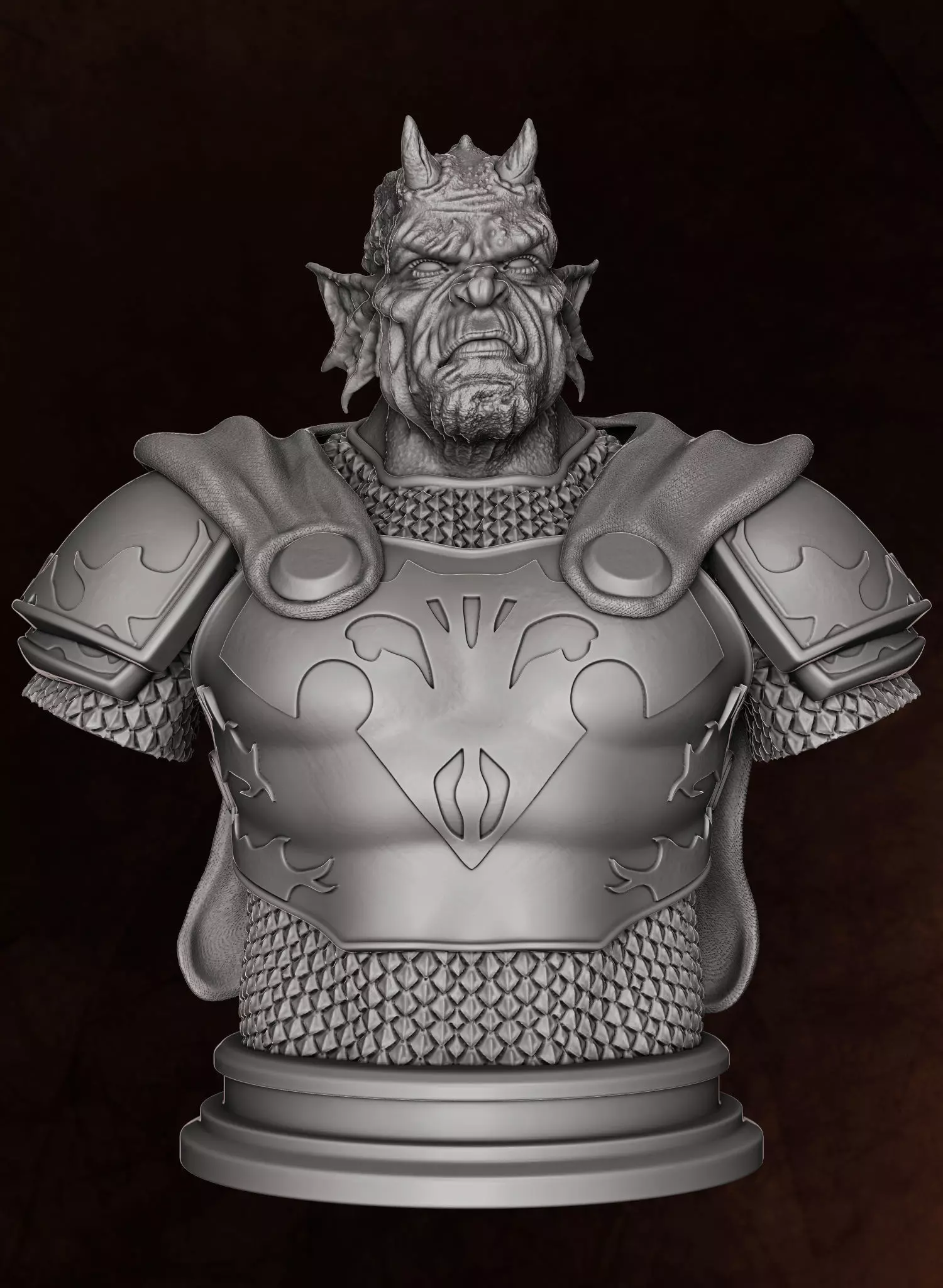 With +/- 400 mm from head to base.Inspired by many concepts.Its made for 3d printing but i uploaded an archive with polypaint.With the help of a mentor I made a lot of improvements compared to my first model.I made the upper torso with a part of the arms and with a simple base at the end.I have to improve my photoshop skills, but I am working on it. I hope you like this model, I liked it very much.