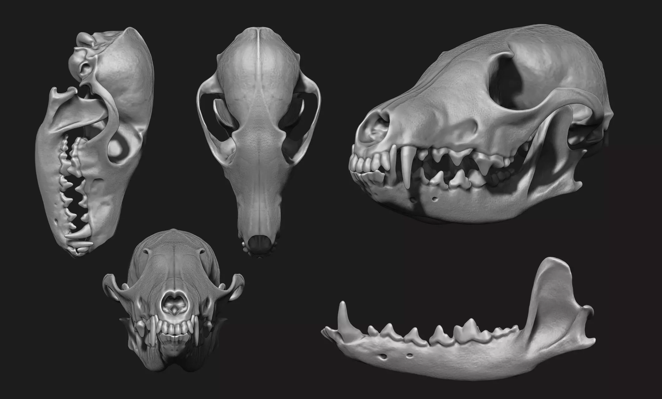 Three models are included (Stl, Obj and Vrml) the full skull, skull and the jawbones. It can be used to create other 3D models, for jewelry, for decoration, to create miniatures ... (This is the main purpose for which this model has been created.)**