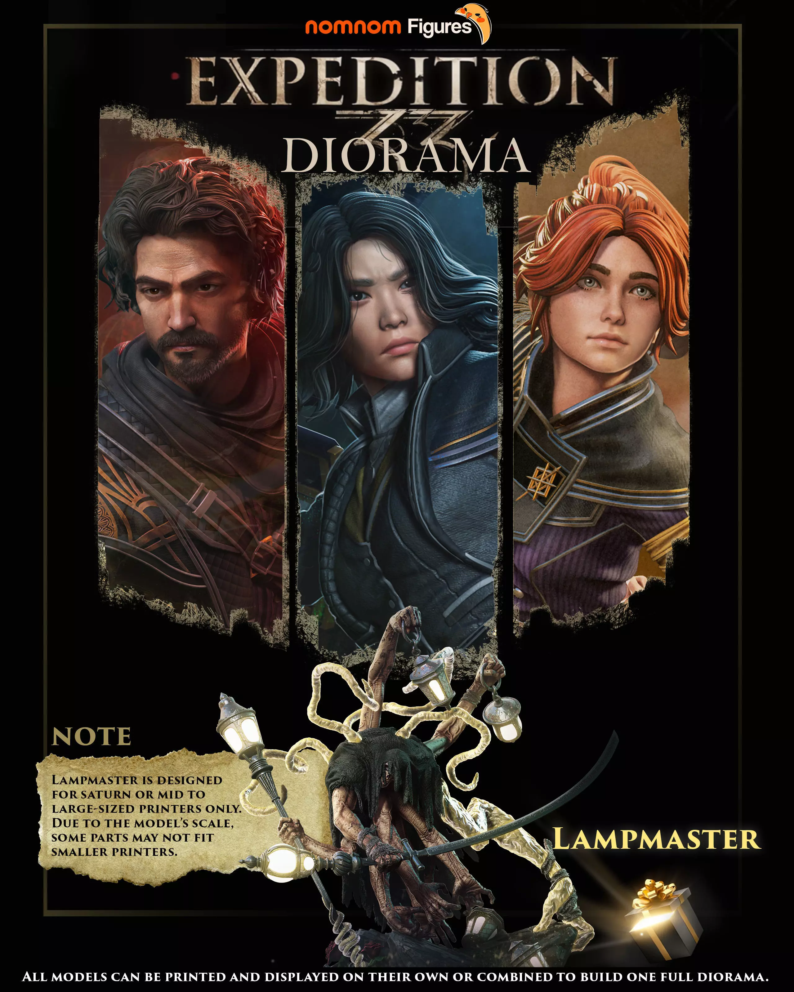 NOTE: Bust version not included with Lamp Master figure! Lampmaster is designed for Saturn or mid/large-sized resin printers only. Due to the large scale and parts of this character, the model won’t fit on smaller printers.