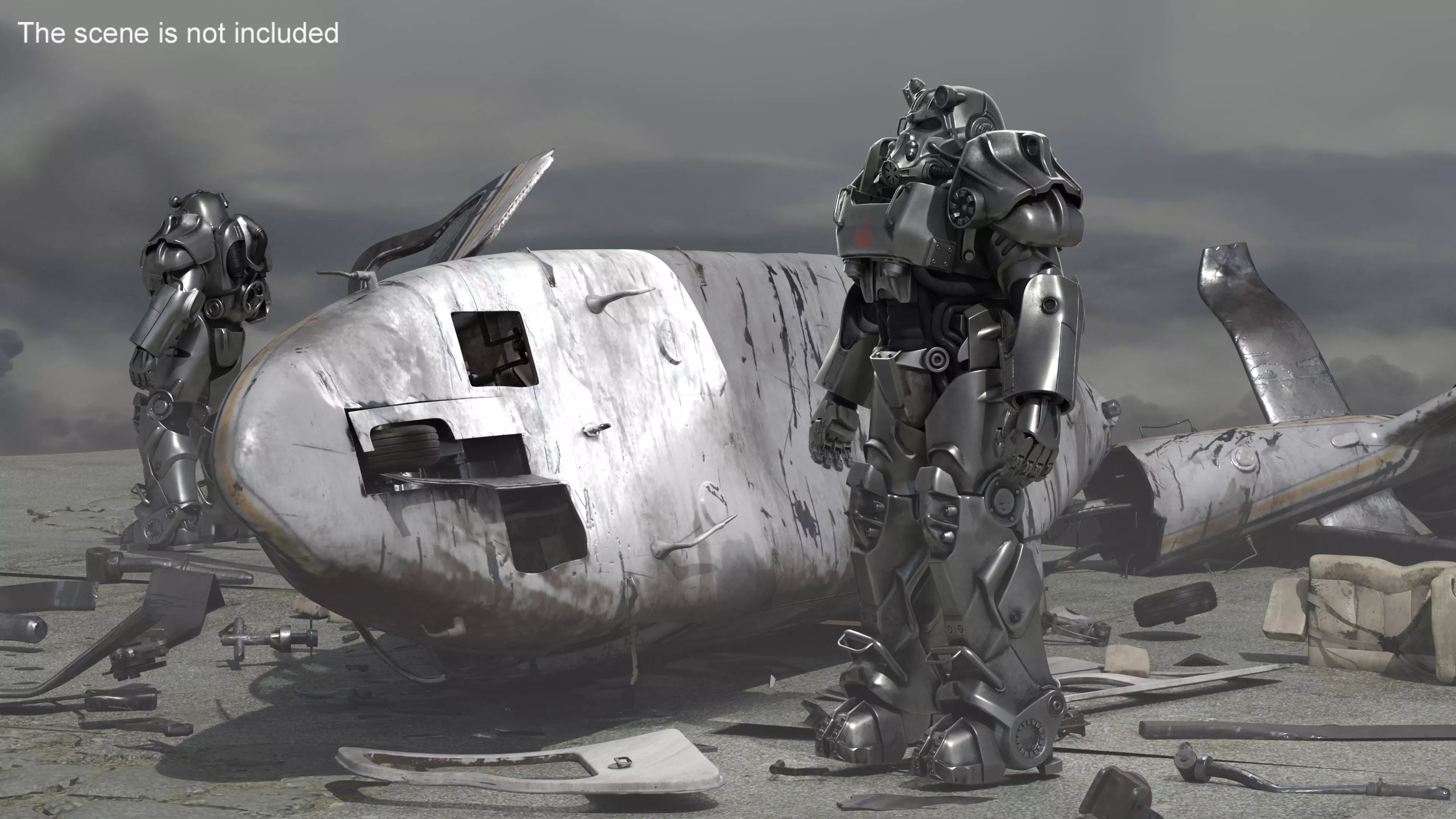 This model is meticulously crafted to showcase the robust design of the T-60 power armor, featuring intricate details such as articulated joints, battle-worn textures, and integrated weapon systems. It captures the essence of post-apocalyptic combat gear with its imposing stature and functional weaponry.