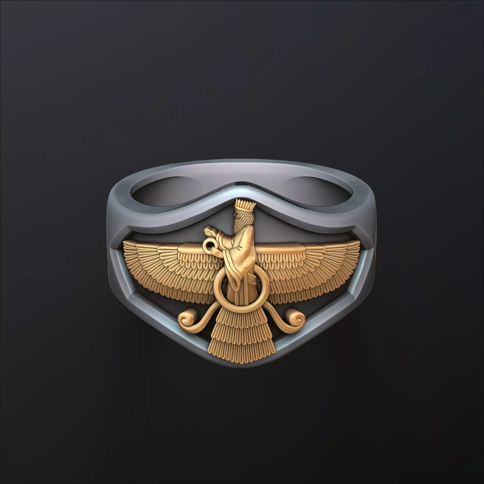 405.Faravahar Ahura Mazda ring 3D Print Model