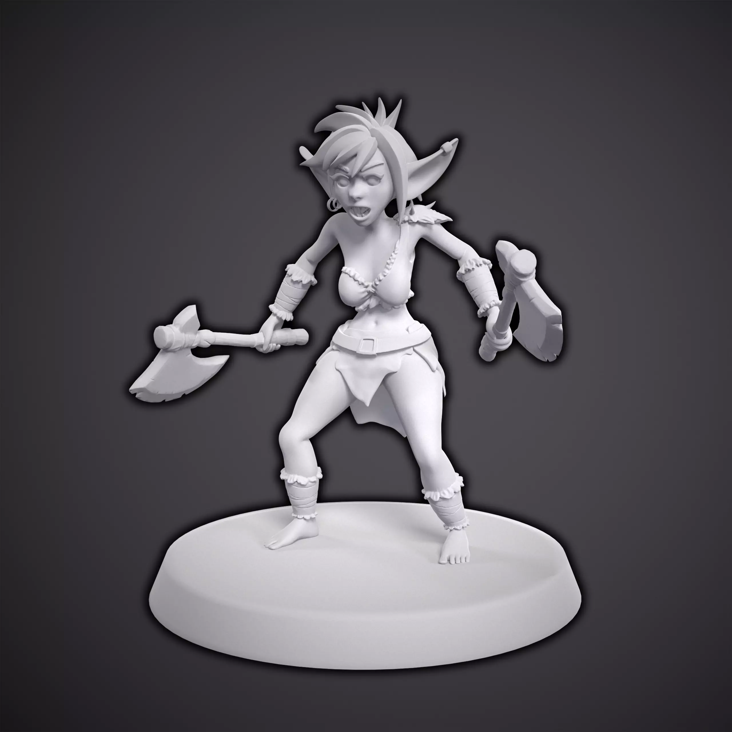Unleash the fury of the wild with this high-poly 3D printable miniature of a fierce female Goblin Barbarian, ready to dominate your tabletop adventures. Sculpted with incredible detail, this model comes in two versatile formats: a single solid figure for quick printing and separated pieces for hobbyists who love to pose, paint, and customize every element of their minis.
