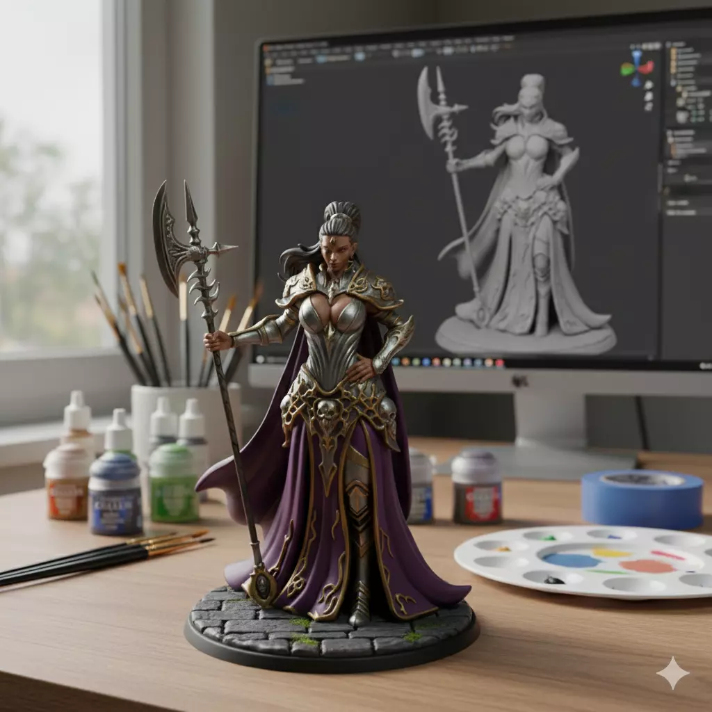 This highly detailed female warrior miniature is designed for players, collectors, and painters who want a powerful and elegant hero on their tabletop. Featuring fitted armor, a commanding stance, and a beautifully sculpted weapon, she brings both strength and style to any fantasy setting.The model is fully optimized for 3D printing, with reinforced proportions, clean geometry, and crisp details that remain sharp even at small scales. Perfect for resin or FDM printers, the sculpt prints reliably without fragile overhangs.Both STL and OBJ formats are included, ensuring compatibility with all major slicers and 3D printers. Whether used as a player character, elite warrior NPC, or campaign boss, this miniature adds a striking presence to any RPG or wargame.