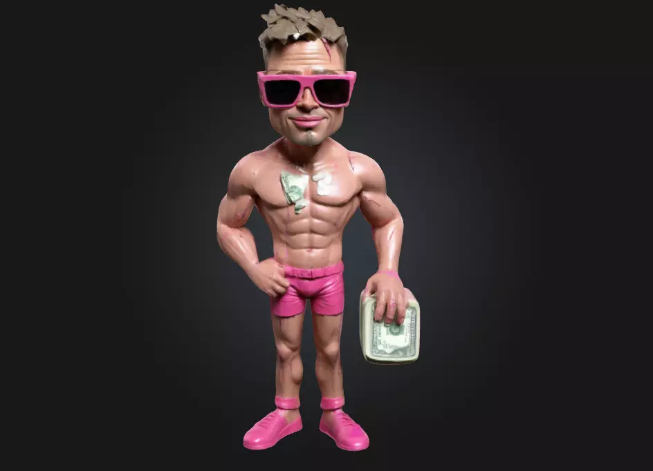 A stylized 3D printable caricature of Brad Pitt in his iconic Fight Club persona. This figure captures the rugged, rebellious nature of Tyler Durden in a cartoonish, exaggerated format.