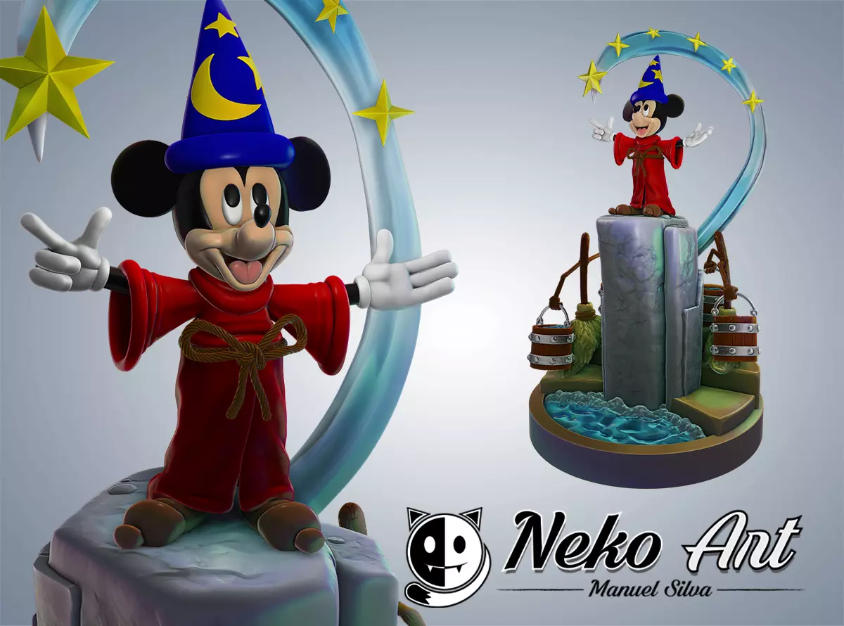 Figure inspired by the mickey mouse fantasy movie. This figure has 40 pieces for resin printing because it has small pieces. The size of the figure 25 cm high.The files are compressed in ZIP with 7 separate folders: Base, Sparkles, Broom 1, Broom 2, Mickey, Clothes and Variants.The compressed OBJ is not for animation, use it only in case you need to export the model to a format other than STL.For personal non-commercial printing.