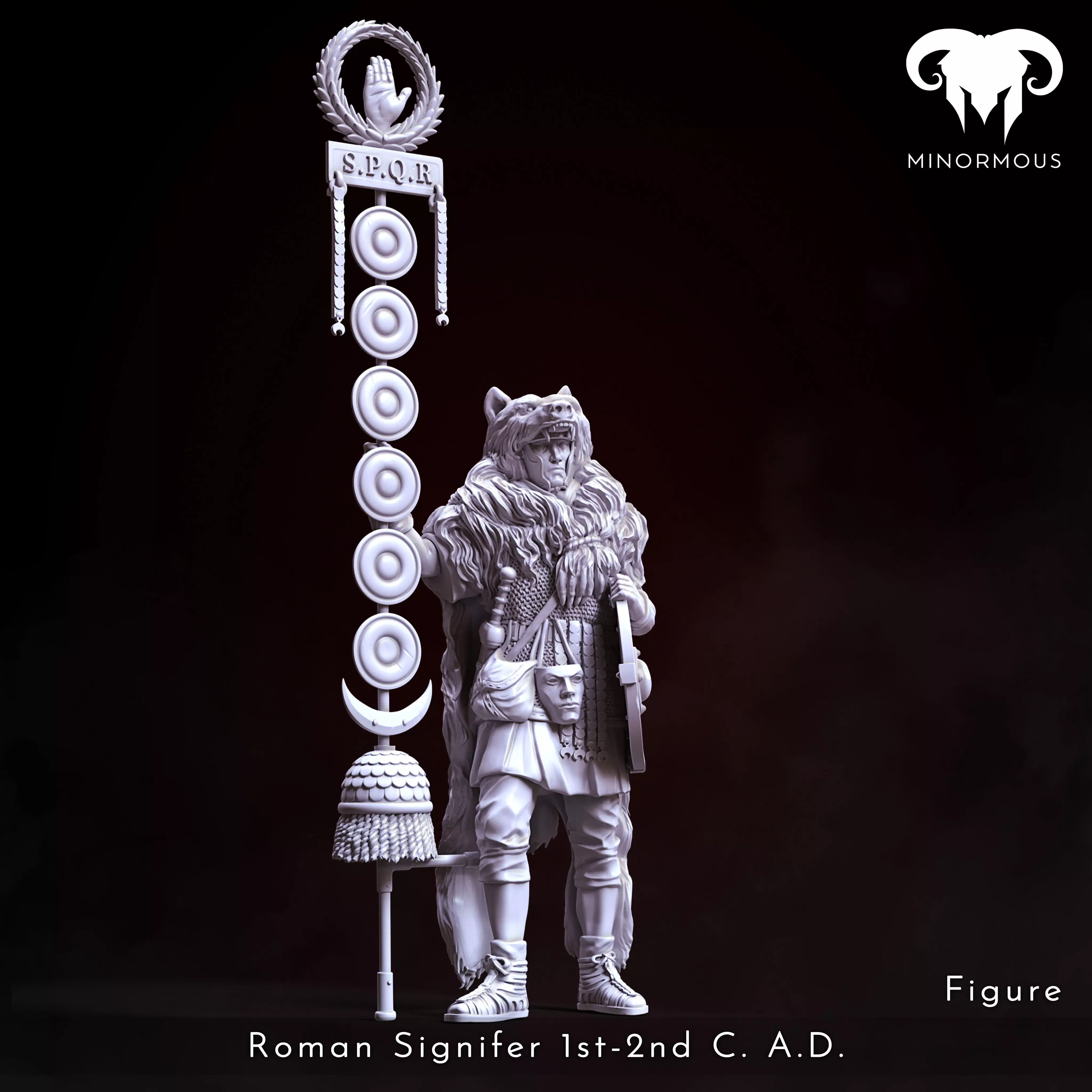 In ancient Rome, the signifer was a standard-bearer in a Roman legion. The signifer carried the legion's standard, or signum, which was a flag or emblem that represented the legion and its purpose. The signum was typically topped with an eagle or other symbolic figure.