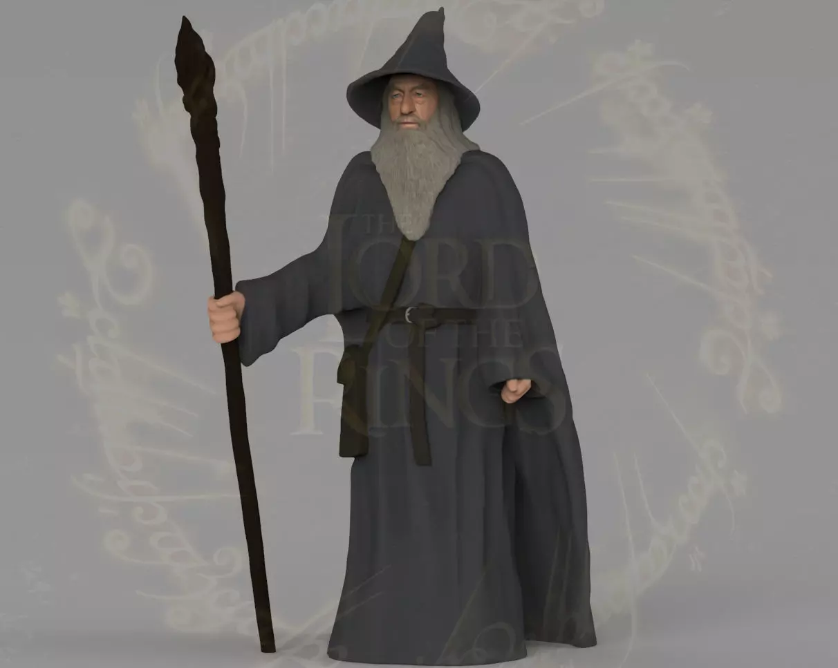 Here is Gandalf from Lord of the Rings and Hobbit 3D model ready for full color 3D printing. The model is not scaled, so you will have to adjust this to the size you want. Zip file contains obj and wrl with texture in png. The model was created in ZBrush, Mudbox and Photoshop.