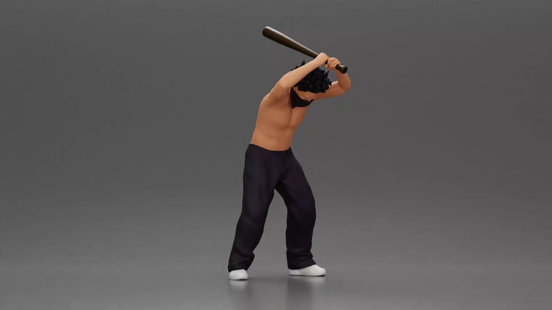 gangster man with curly hair swings baseball bat 3D print model