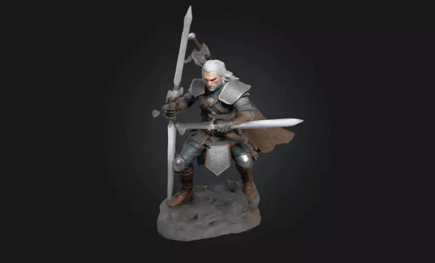 Features:High-resolution sculpt for realistic detailsSeparated parts for easy 3D printing and assemblyDynamic pose with swords drawn, ready for battleTextured rocky base for stability and aestheticsOptimized for FDM and resin printersPerfect for Witcher fans, collectors, and tabletop gamers, this Geralt figure brings the White Wolf to life in stunning detail.