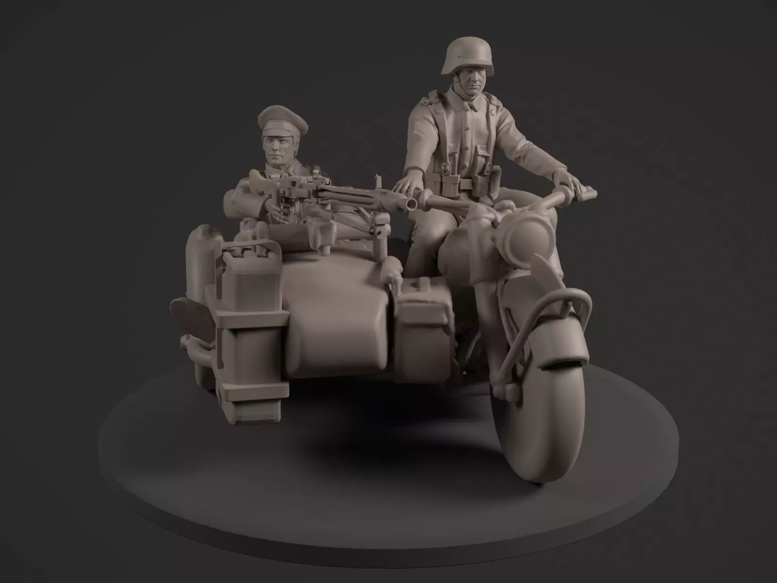 Motorcycle and soldiers with clothes, equipment and machine gun MG42