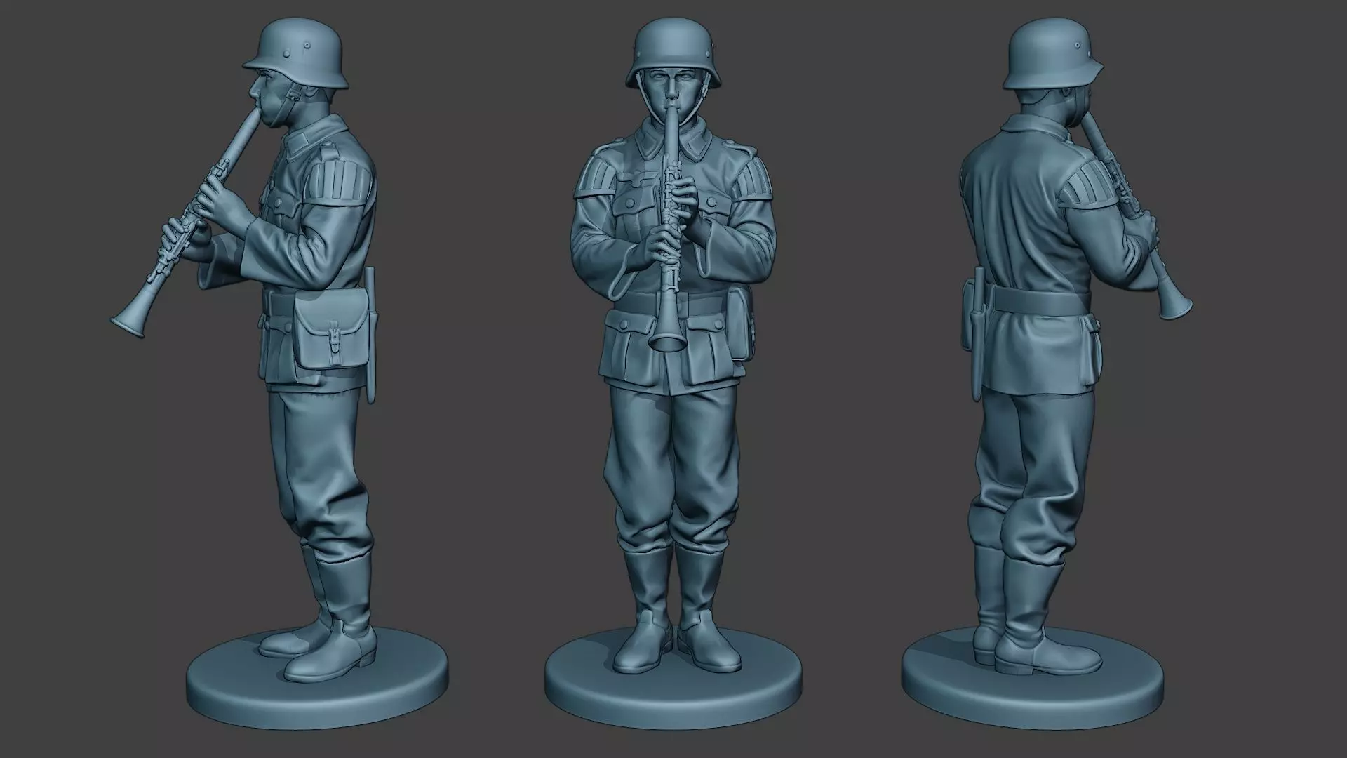 - Wehrmacht soldier model with different musical instruments. German soldier musician model. Model on stand pose with a Clarinet. Model part of a complete musical band.