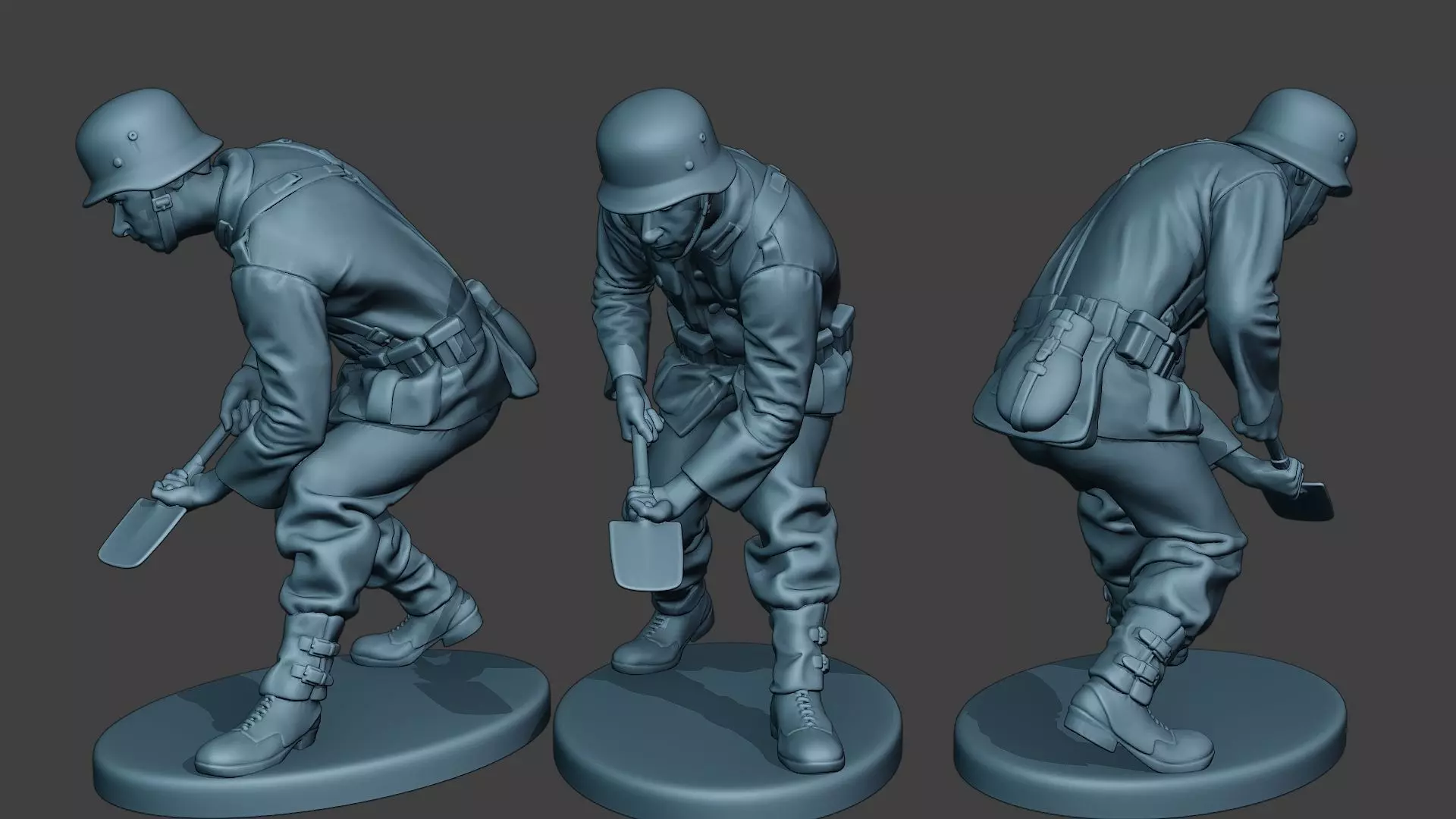 - Wehrmacht soldier model with guns, clothes and equipment. German model digging a tomb.