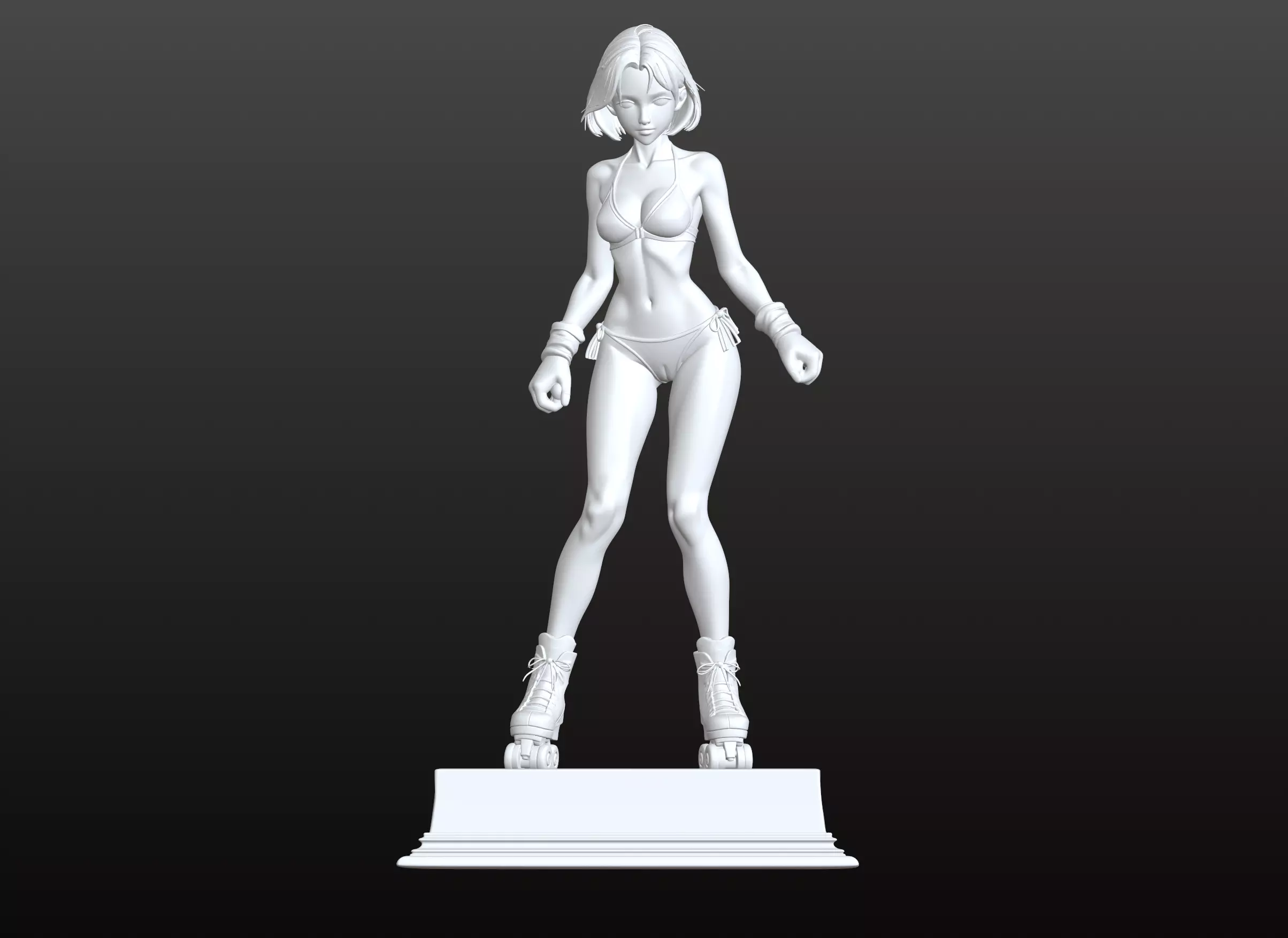 A dynamic and eye-catching 3D model featuring a beautiful manga-style girl on rollers, captured in an athletic and energetic pose. This figure expresses movement, balance, and confidence, with a perfectly sculpted physique that highlights speed and agility. Her stance and flowing details give the impression of motion frozen in time, making this model a powerful and stylish addition to any manga-inspired collection.