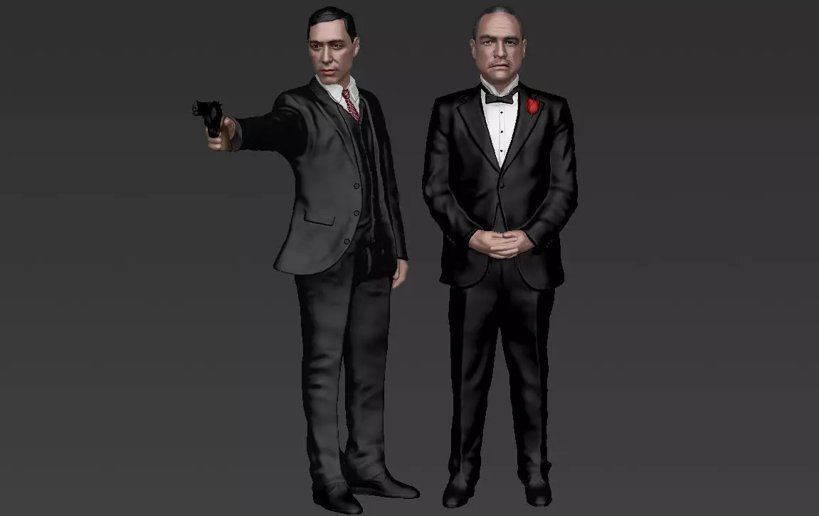 Here are Vito and Michael Corleone (Marlon Brando and Al Pacino) from Godfather 3D models ready for full color 3D printing. Zip files contains obj and wrl with texture in png.