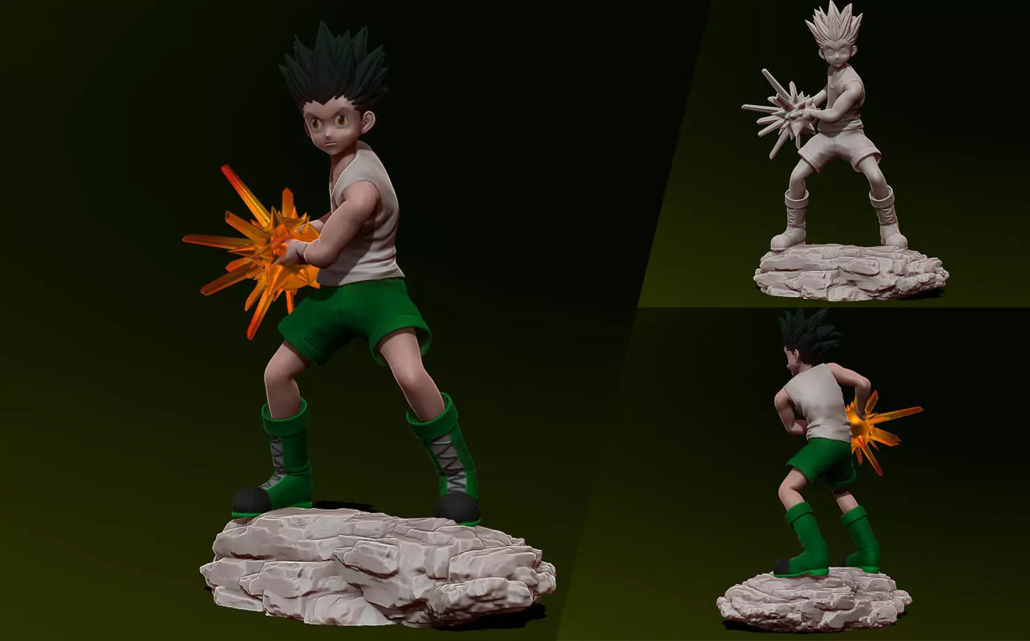 Gon Freecs from HxH as a 3d printable figurine, ive made this one to go perfectly with the hisoka ive made, in terms of style and scale.