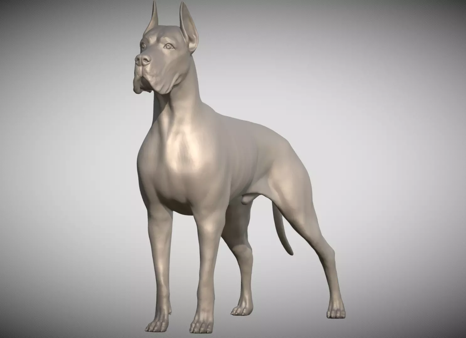 Here is Great Dane dog 3D model ready for 3D printing. The model current size is 20 cm height, but you are free to scale it. Zip file contains obj and stl. The model was created in ZBrush.