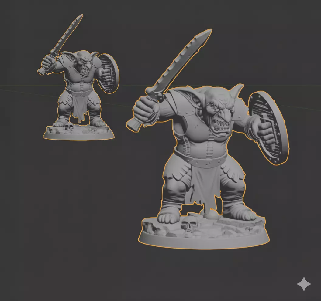 This model was meticulously sculpted in ZBrush with a focus on high detail and is optimized for 3D printing. Every element, from the tattered armor to the sturdy wooden shield, has been carefully crafted to create a stunning figure perfect for fantasy tabletop games, collectors, or as a display piece.