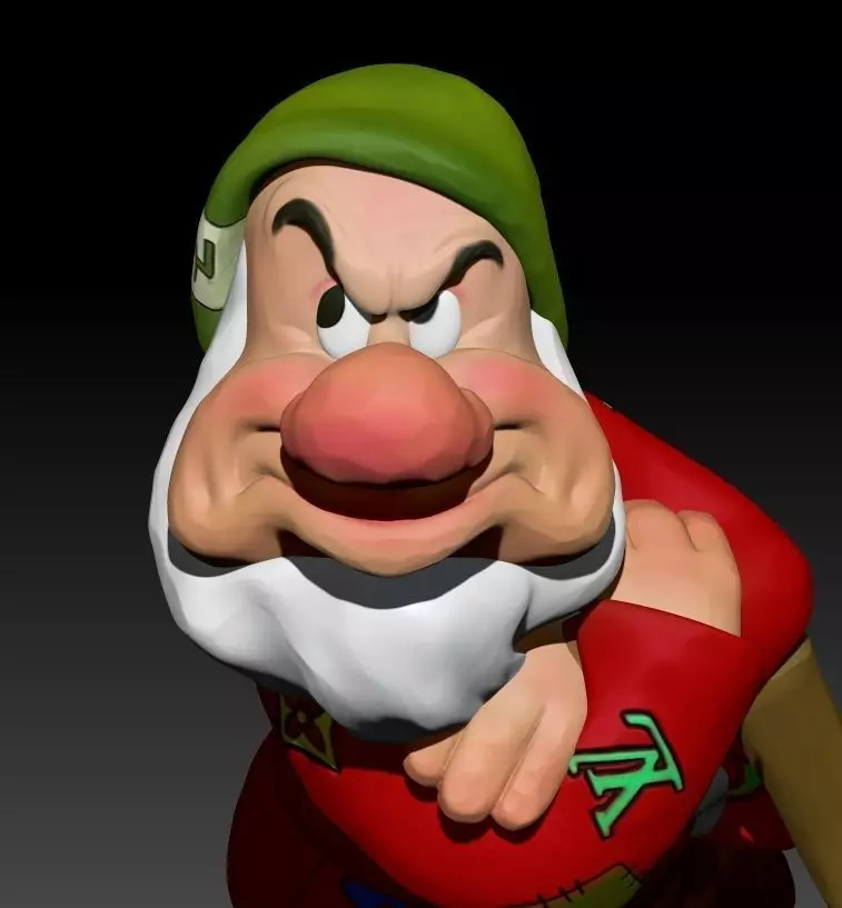 Grumpy is one of the titular seven dwarfs in Disney's 1937 film Snow White and the Seven Dwarfs. True to his name, Grumpy is grouchy, pessimistic, and overbearing. He is often depicted with a scowl and crossed arms to accentuate these qualities. Underneath his gruff exterior, however, Grumpy possesses a warm heart but seldom chooses to show it.