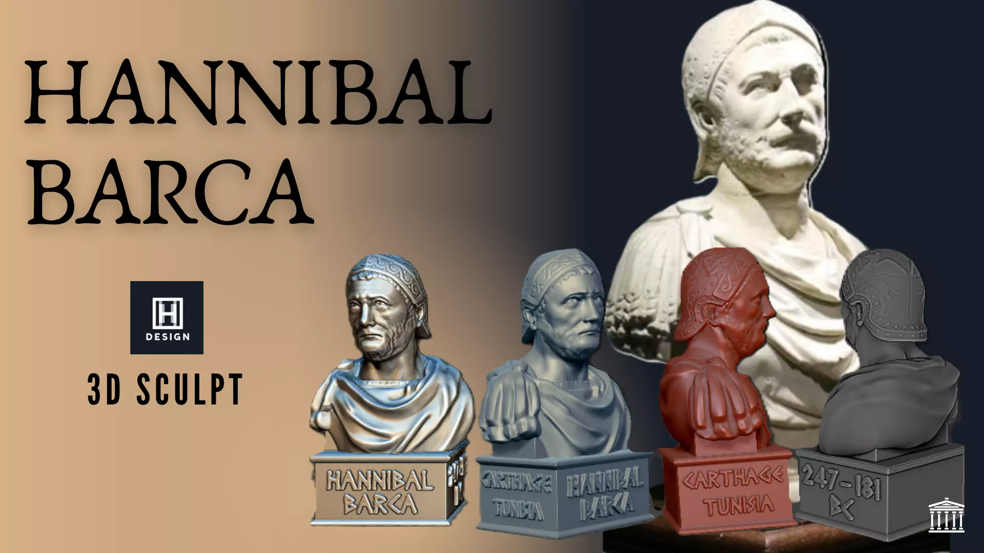 This 3D printable bust of Hannibal Barca, the legendary Carthaginian general, is a high-detail digital sculpture inspired by real historical statues and museum references. Known as one of the greatest military commanders in history, Hannibal is most famous for crossing the Alps with elephants to fight Rome.