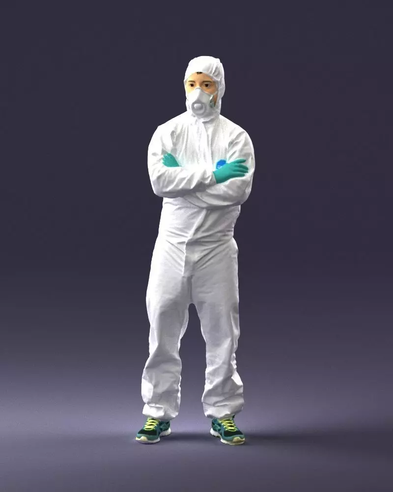 This model is a scan-based protective suit worker figurine, suitable for physical production and display.