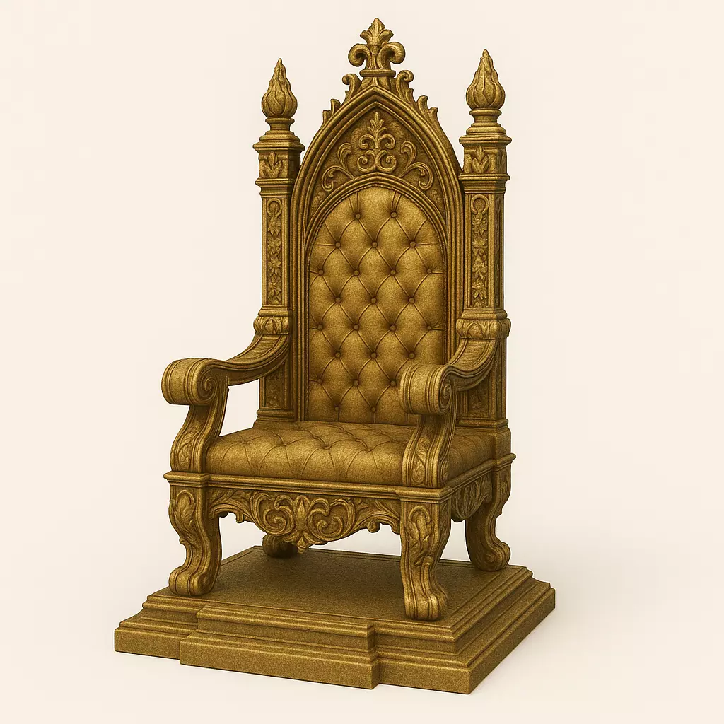 Elevate your tabletop kingdom with the Auric Highthrone, an opulent masterpiece sculpted with luxurious detail and regal authority. With its soaring back, hand-carved floral motifs, tufted upholstery texture, and lion-paw accents, this throne embodies the grandeur of an empire at its peak.
