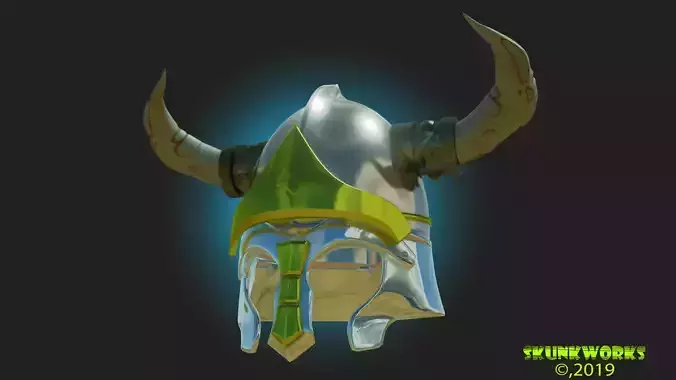 Horned Helm done in Blender 2.80 - .stl, .obj, .fbx, .blend formats inside. Textured (polypainted). Textures inside the pack. EEVEE materials packed.
