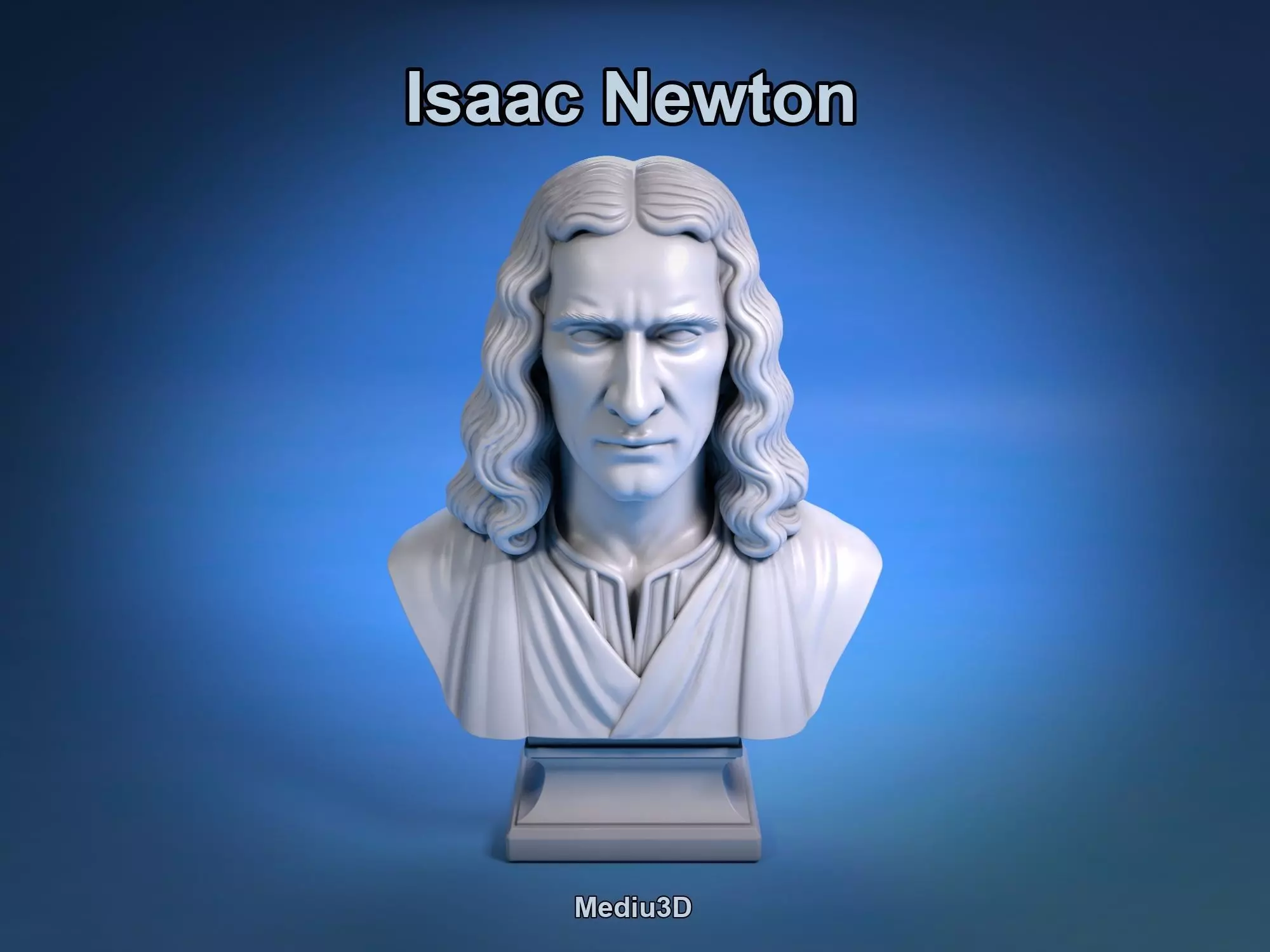 This classical-style bust depicts Sir Isaac Newton with meticulously sculpted facial features and flowing shoulder-length hair. His expression conveys deep contemplation, capturing the intellectual legacy of one of history’s greatest scientists. The bust includes a traditional scholar’s robe and is mounted on a simple pedestal.
