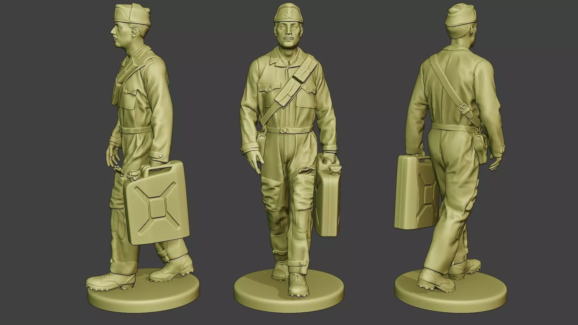 - Italian Tank Crew soldier model with guns, clothes and equipment. Model walking.