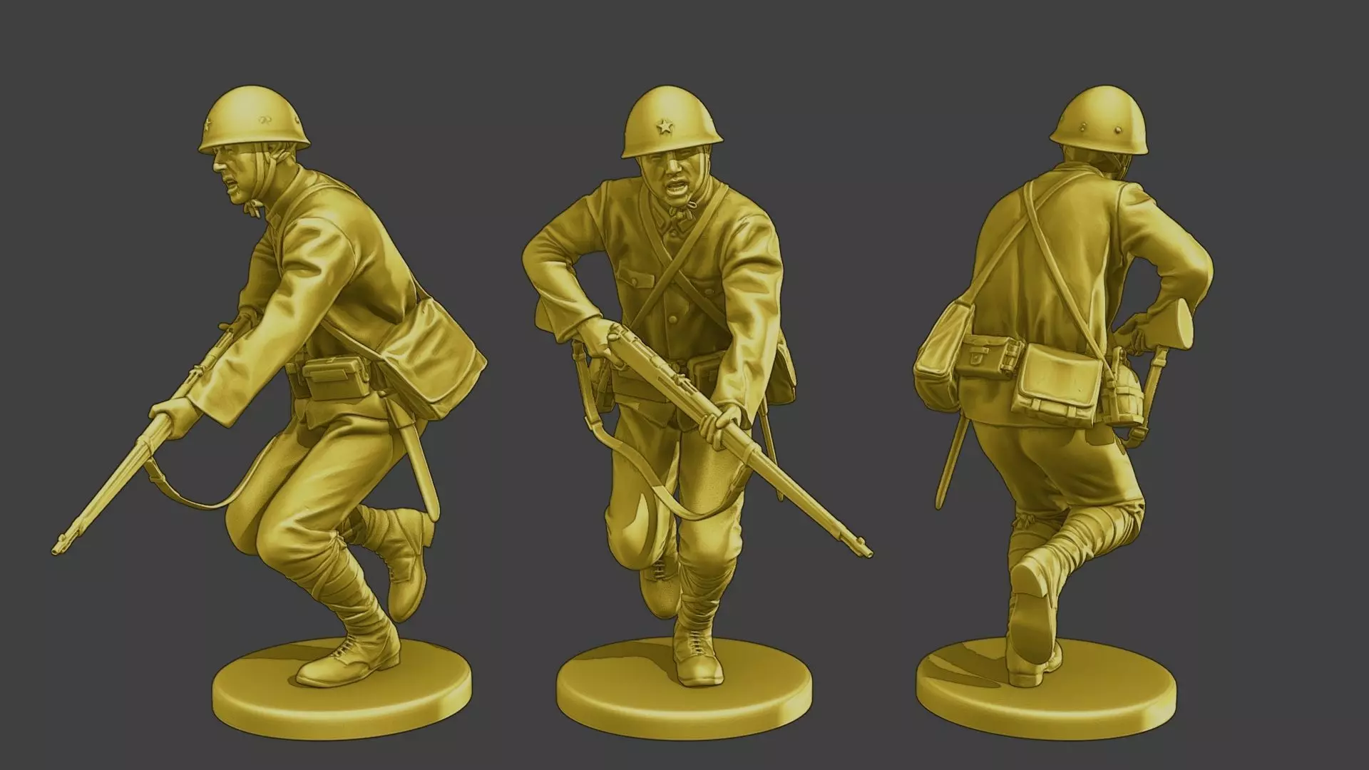 - Japanese soldier model with g0ns, clothes and more. Model in Action running pose.