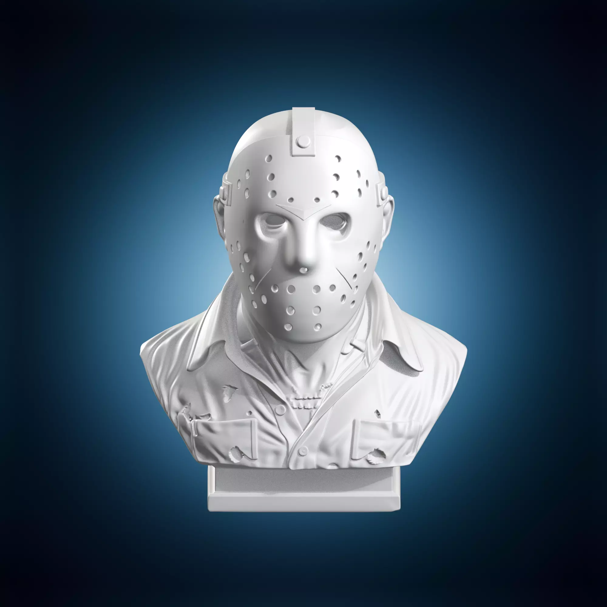 This stunning 3D printable bust captures the terror of Jason Voorhees from the legendary Friday the 13th franchise. Every detail of his weathered hockey mask has been carefully sculpted to reflect the brutality of his cinematic history. The model features deep gouges and realistic textures on the skin visible through the mask eye holes. This asset is perfect for horror enthusiasts and collectors of slasher movie memorabilia. The sculpt stands as a testament to the iconic character of Camp Crystal Lake. For best results we recommend printing this model on a high resolution resin printer. Using liquid resin allows for the fine captures of the micro textures and battle damage on the mask. If you choose to use an FDM printer ensure you use a low layer height to minimize visible lines. We suggest using a layer height of 0.1mm or less on FDM machines. Supports will be required for the chin area and the underside of the base.