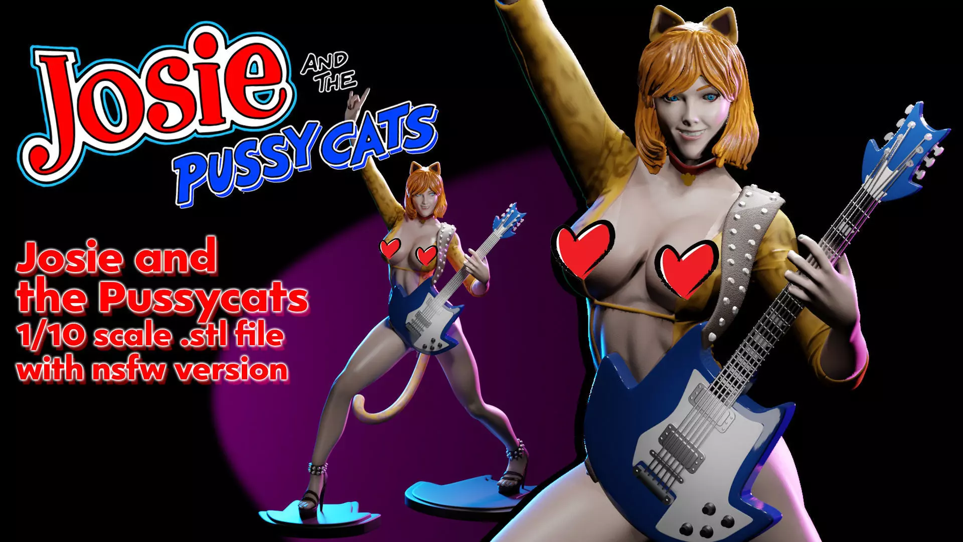 Hi! Here my sexy fanart version of the Josie and The Pussycats protagonist Josie made as a statue in 1:10 scale. Josie is standing on 2 little bases with cat head shape and she's playing a cat guitar! Ready to Rock!The file is made in Blender 3D. The file is printed and tested. The digital sculpture is ready to print and sliced into 15 parts (11 for Josie, 2 for the base and 2 for the guitar!).You can build in SFW or NSFW version!