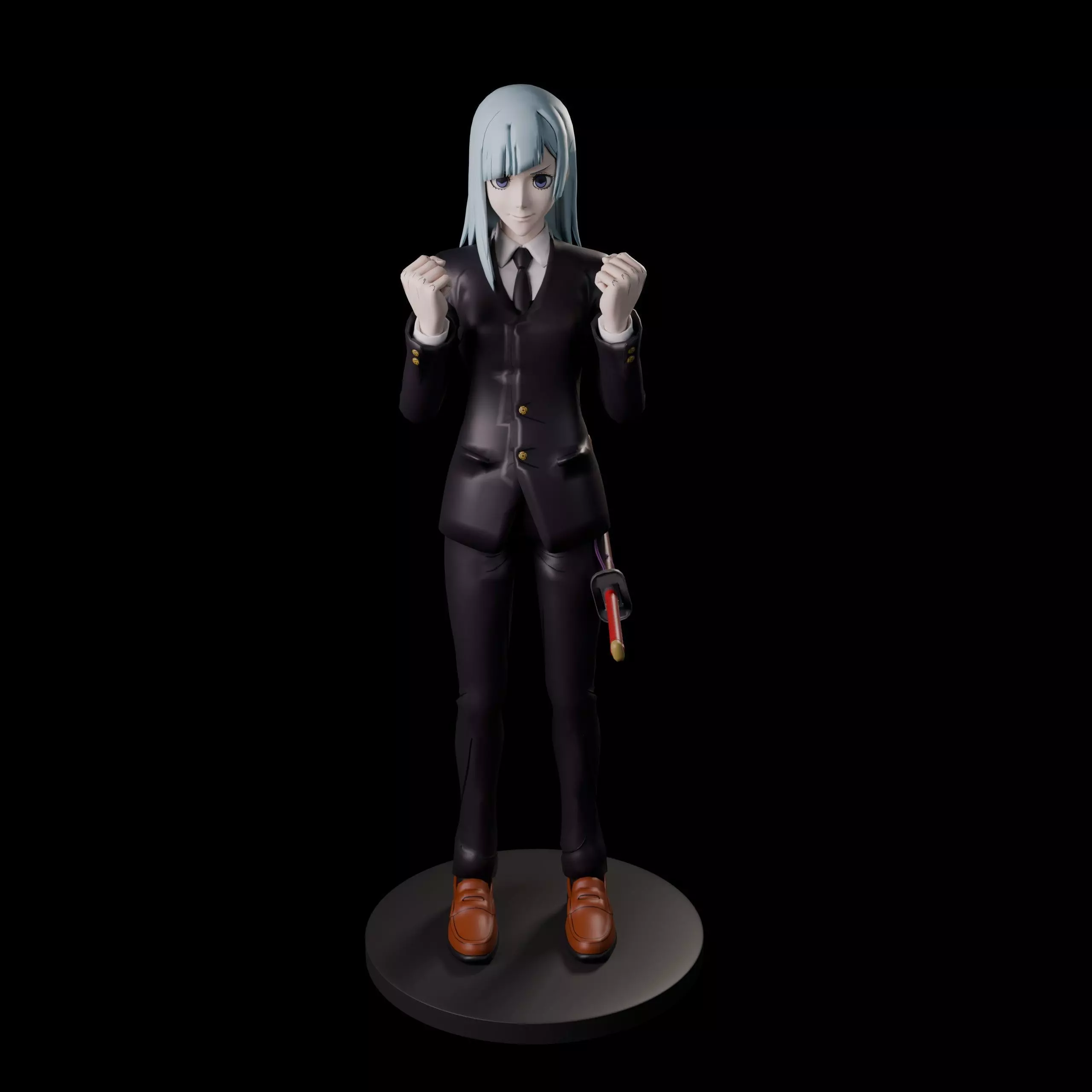 3D model descriptionDiscover this meticulously crafted, high-poly 3D printable model of Kasumi Miwa, a charming and determined second-year student from Kyoto Jujutsu High in the Jujutsu Kaisen series. As a Grade 3 jujutsu sorcerer skilled in the New Shadow Style swordsmanship, Kasumi is known for her empathetic nature, trend-following personality, and unyielding spirit despite her humble background and unremarkable cursed technique. This fan-made model captures her in a dynamic, motivational pose with clenched fists, long light-blue hair, school uniform, and a dangling keychain, making it perfect for collectors, cosplayers, and Jujutsu Kaisen enthusiasts.