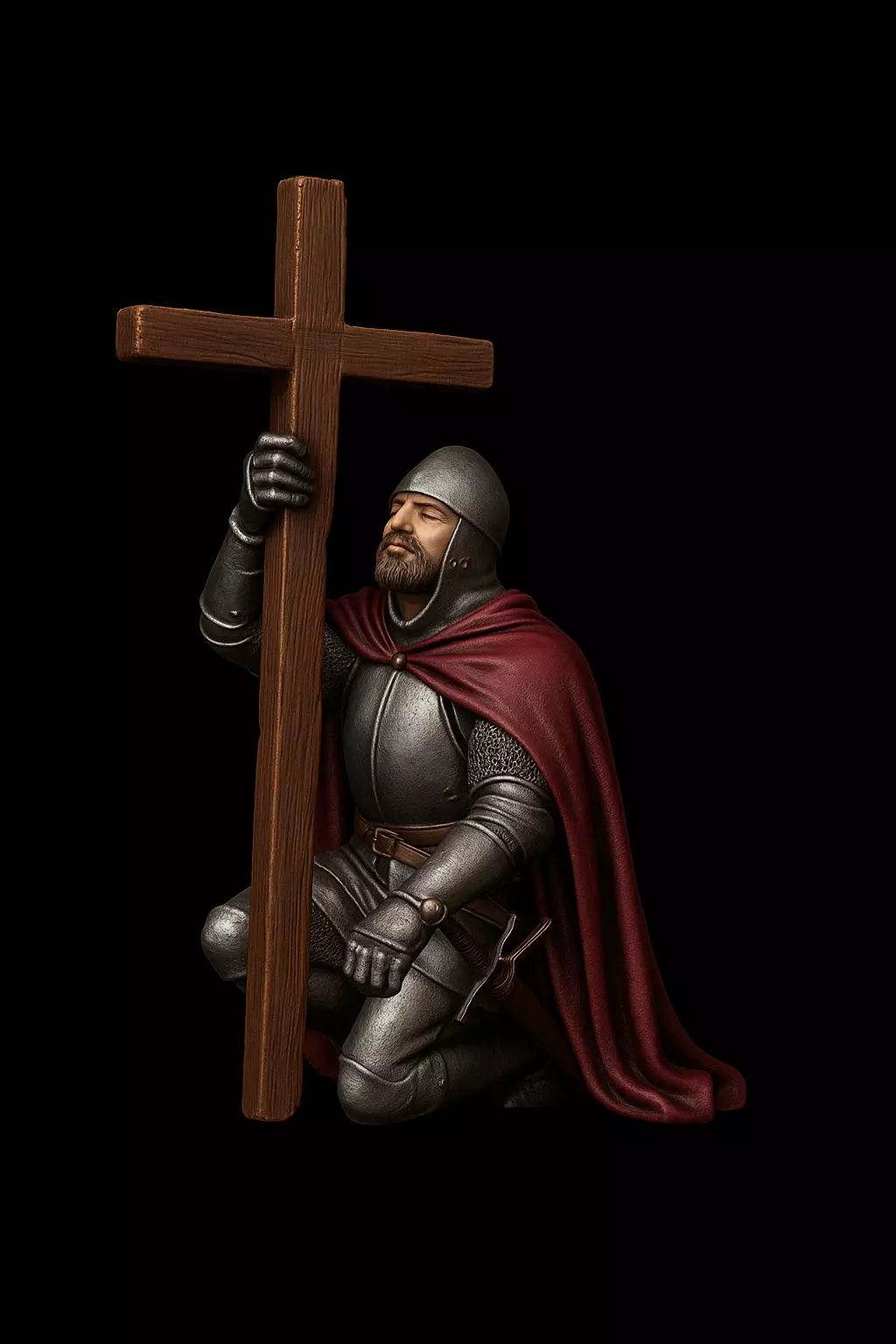 Kneeling Crusader with Cross – STL Model for 3D Printing