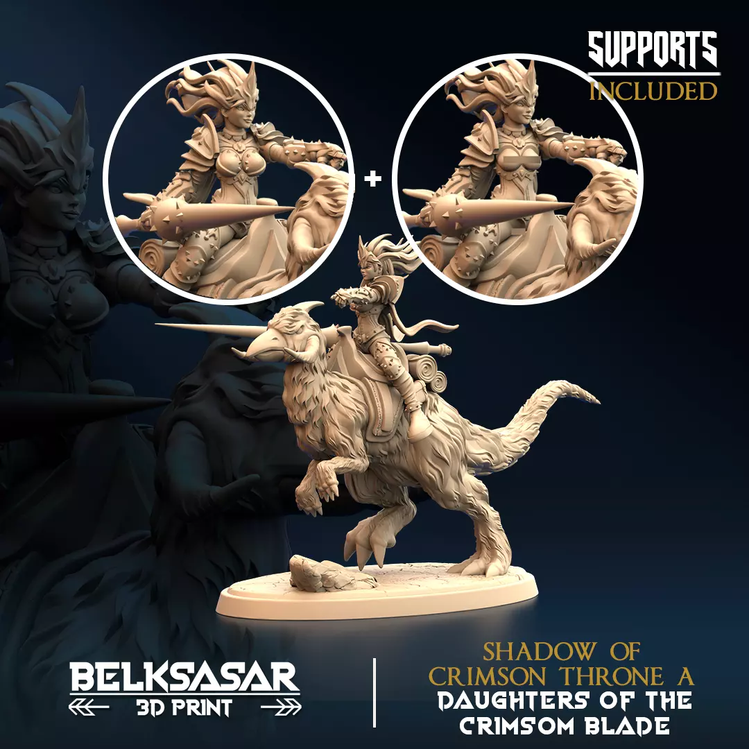 High poly model done in Zbrush, projected to be in 32mm - Base 74x44mm (Pre-supported and tested). Manual to scale your miniatures. Can be print bigger, ideal for resin printers, supports Included.